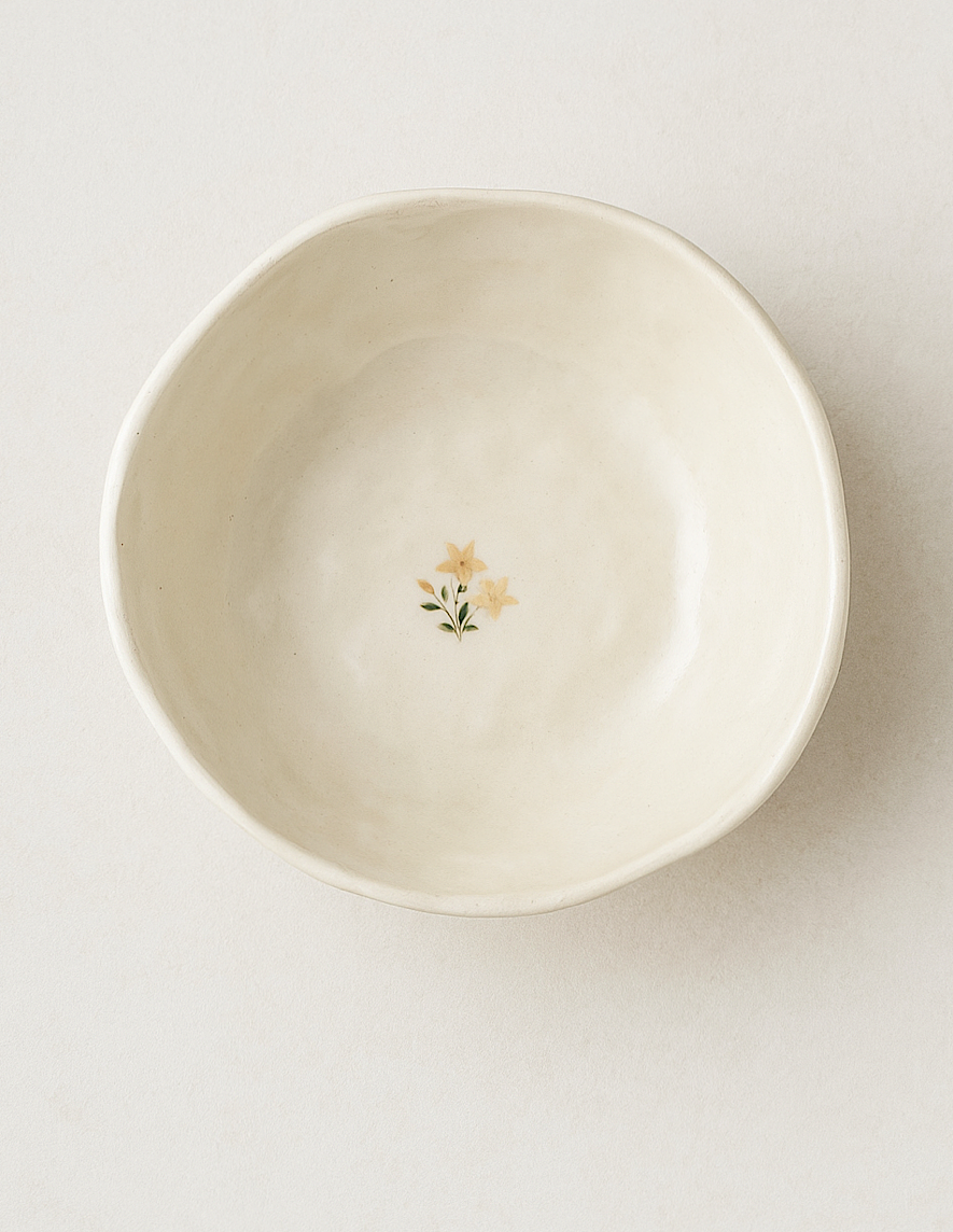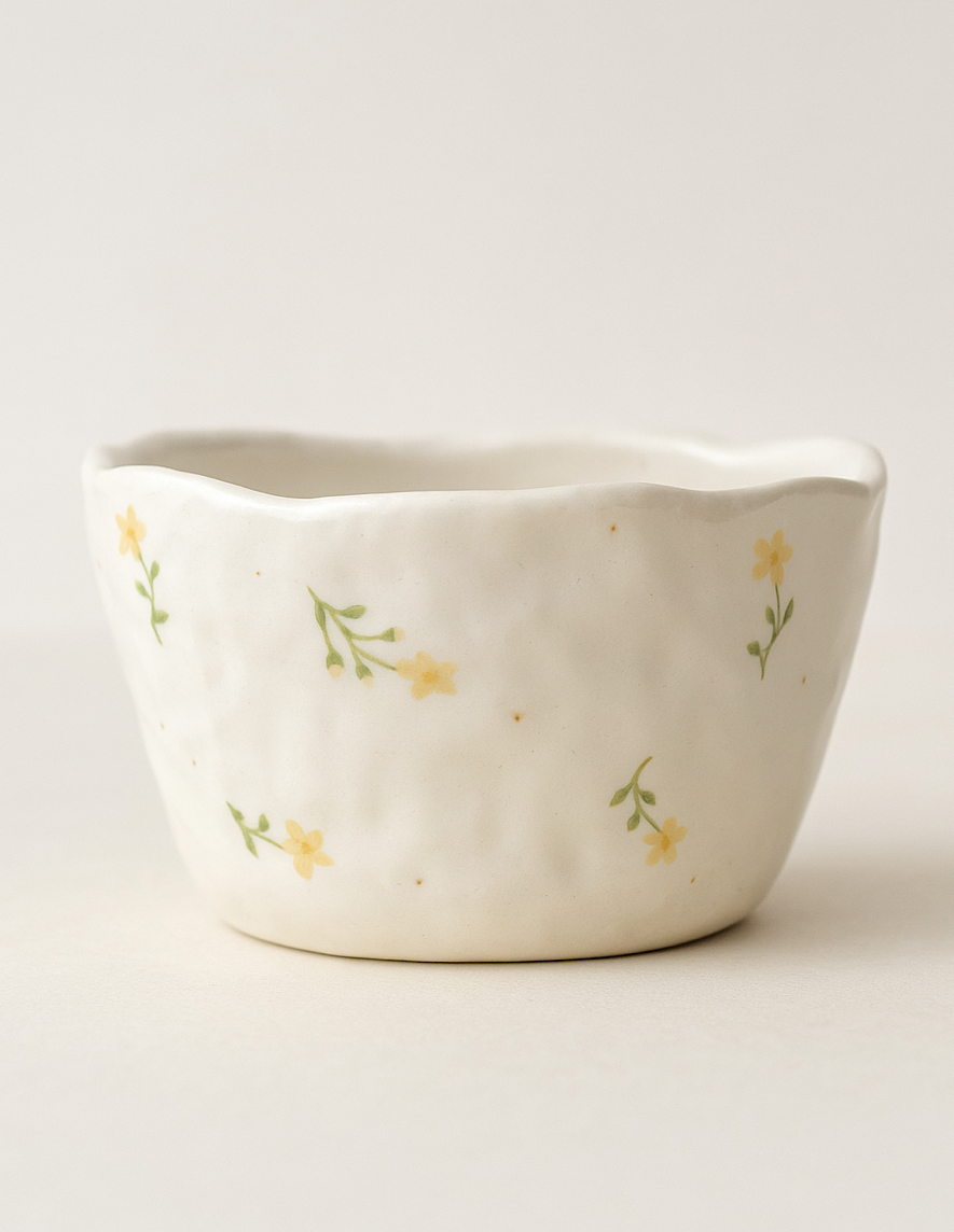 Керамическая пиала ручной работы с жёлтыми цветочками, созданная в мастерской Utro ceramics - будет радовать вас или вашего друга своим внешним видом каждое чаепитие и подарит хорошее настроение на весь день!