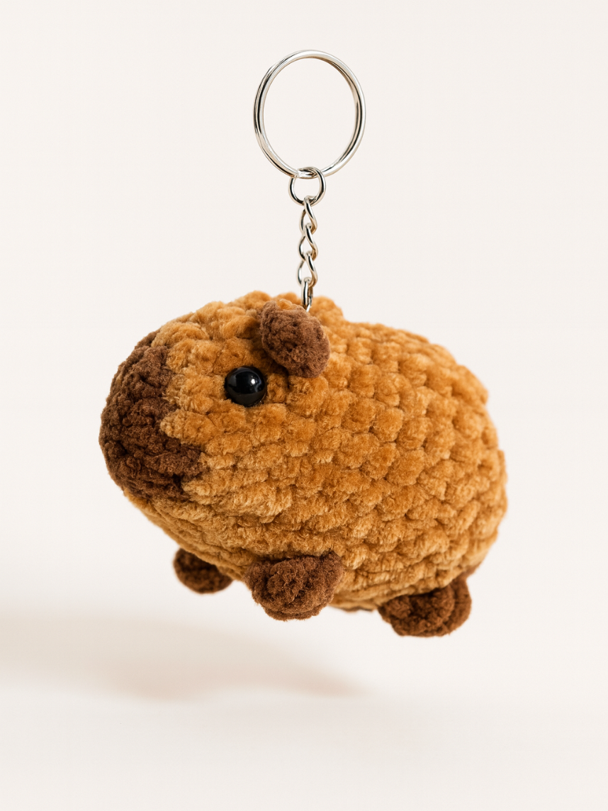 Очаровательный плюшевый брелок в виде капибары мягкий и приятный на ощупь.