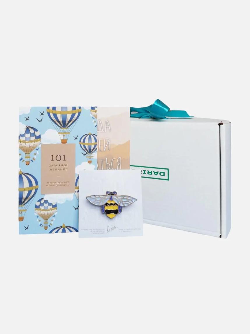 Подарочный набор на 14 февраля с блокнотом «101 заветное желание» №3 и брошью ручной работы «Шмель»