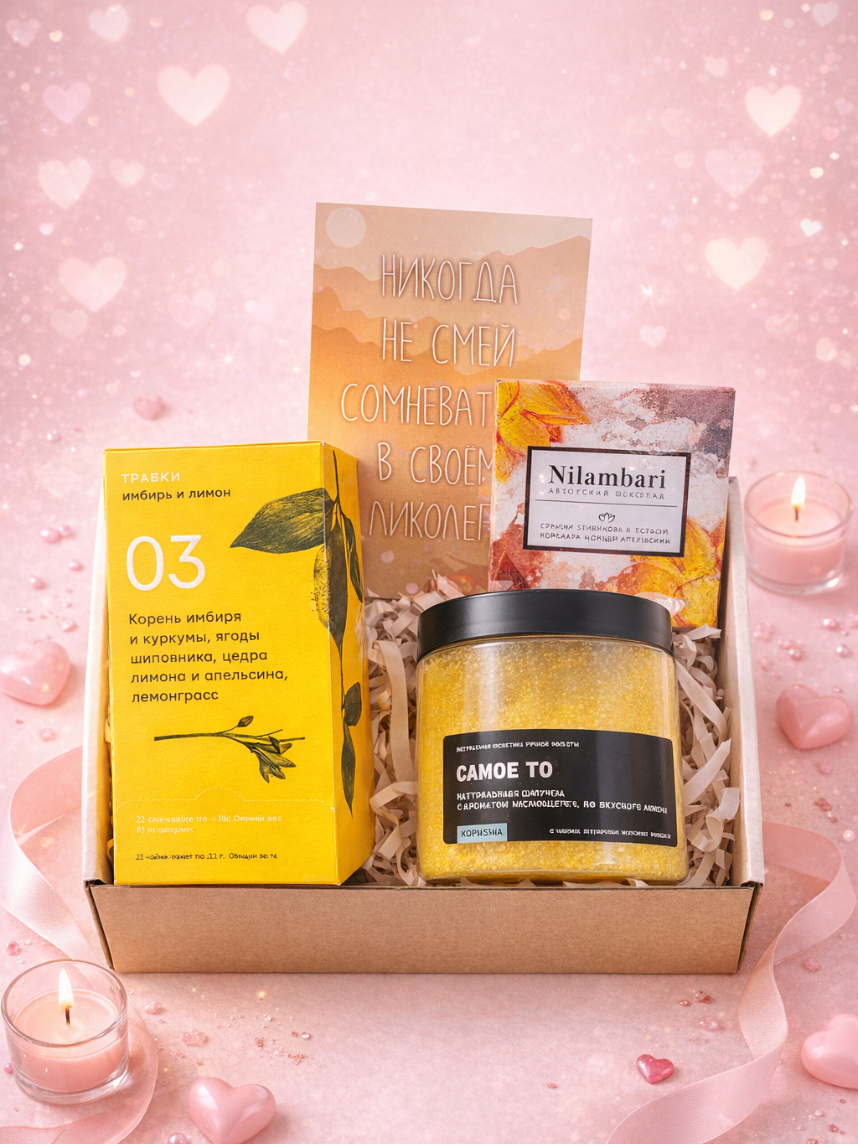Подарочный набор на 14 февраля — это готовое элегантное решение для тех, кто ценит внимание, уют и романтику. Вместо тысячи слов подарите целую вселенную теплых эмоций, собранную в одной красивой коробке. Этот набор создан для того, чтобы ваш особенный вечер стал незабываемым.