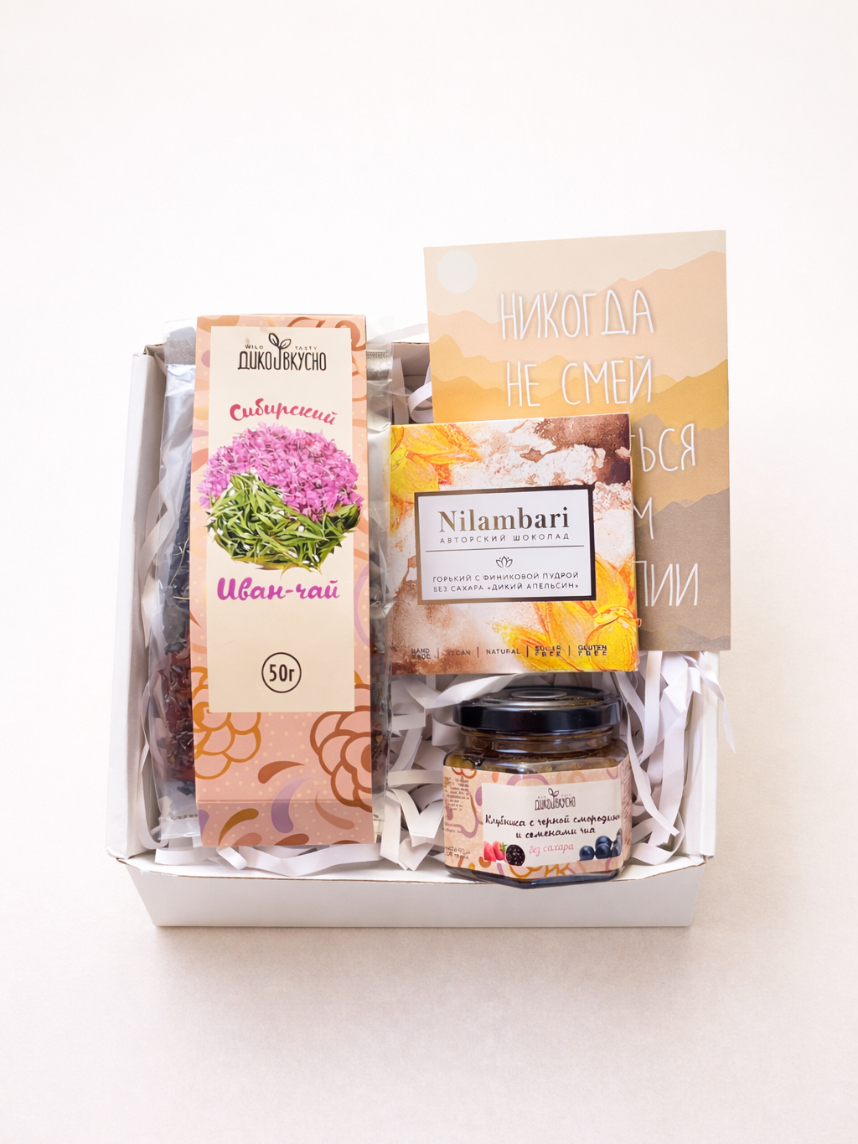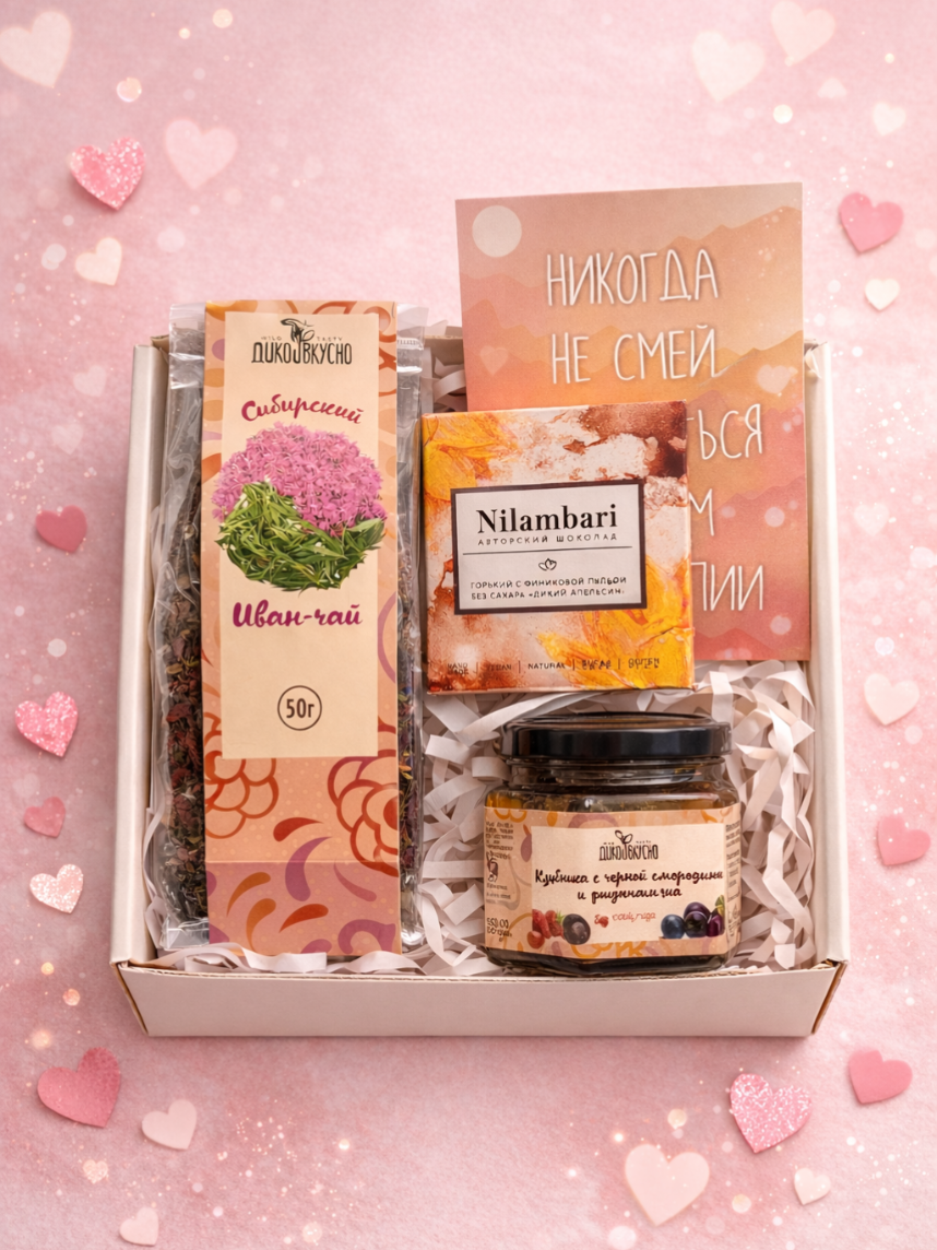 Подарочный набор на 14 февраля с иван-чаем, десертом и шоколадом
