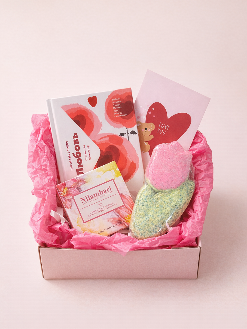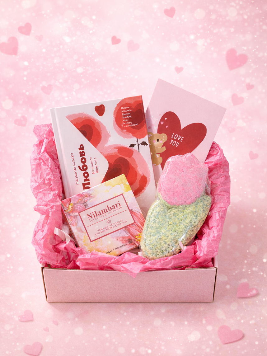 Подарочный набор на 14 февраля с книгой «Любовь: Письма на заметку», бомбочкой и шоколадом