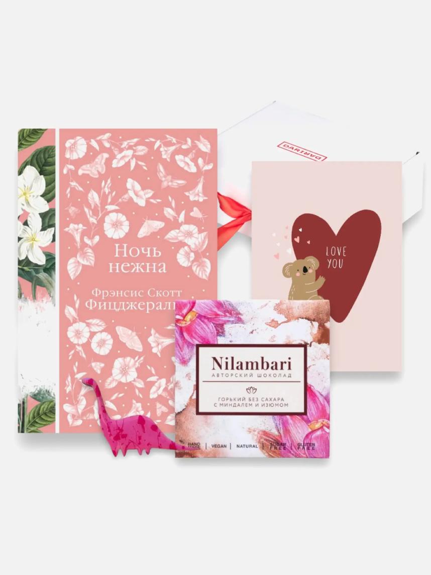 Подарочный набор на 14 февраля с книгой «Ночь нежна», брошью и шоколадом