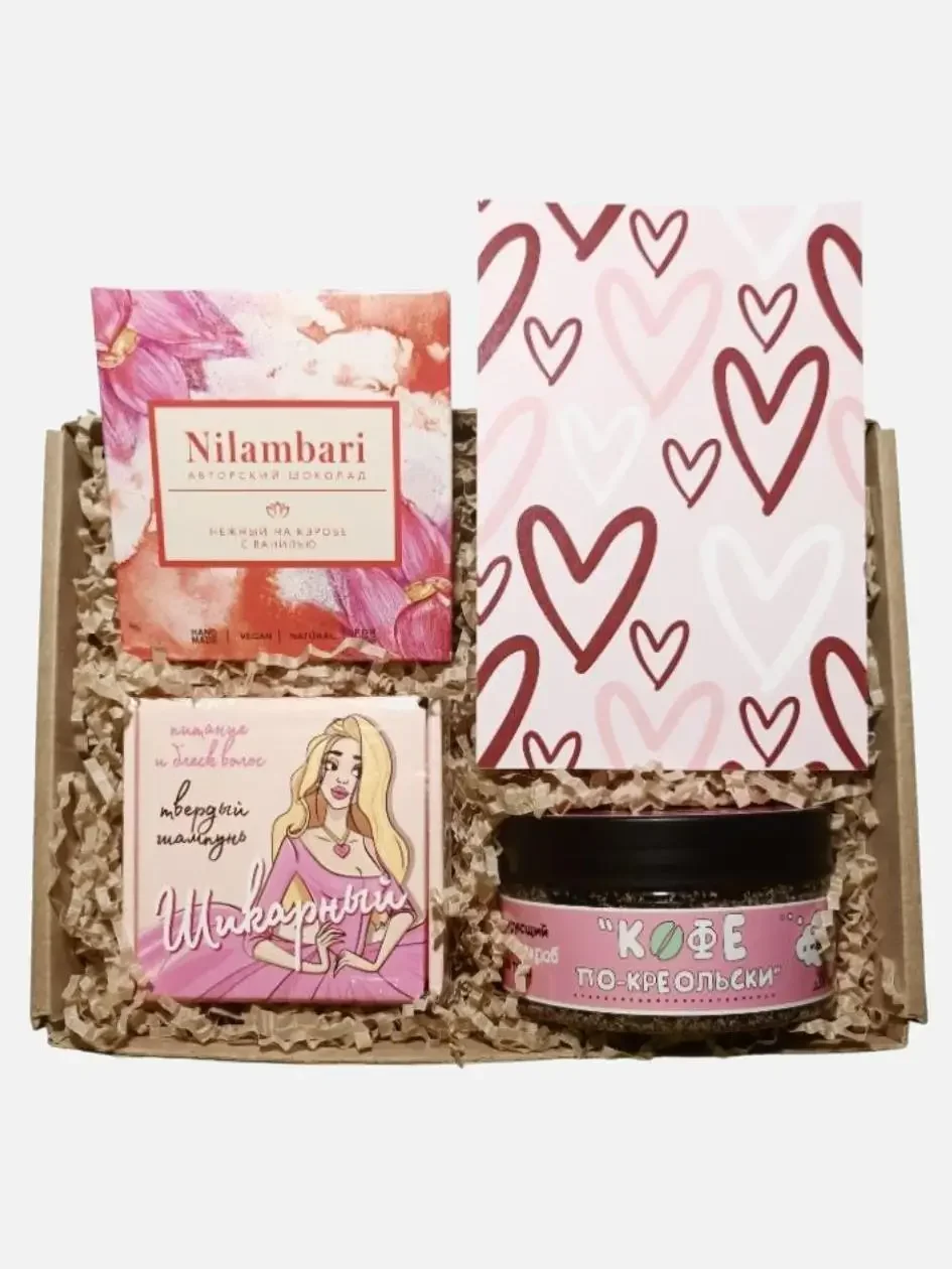 Подарочный набор на 14 февраля с натуральной косметикой, шоколадом и авторской открыткой