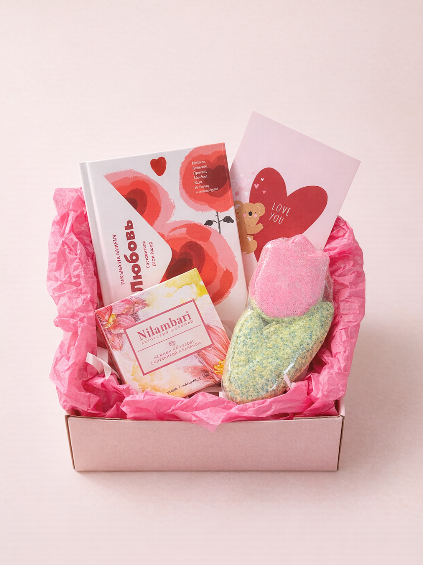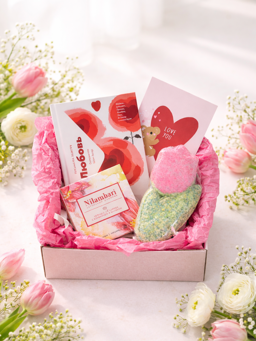 Подарочный набор к 8 марта: книга о любви, бомбочка для ванны и шоколад. Сочетание приятного с полезным — для души и тела. Отличный выбор для создания весеннего настроения и заслуженного отдыха.