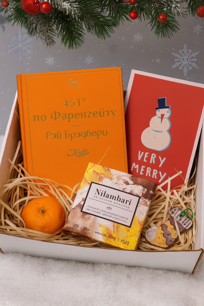 Подарочный набор на Новый год с книгой «451 по Фаренгейту», ёлочной игрушкой и шоколадом
