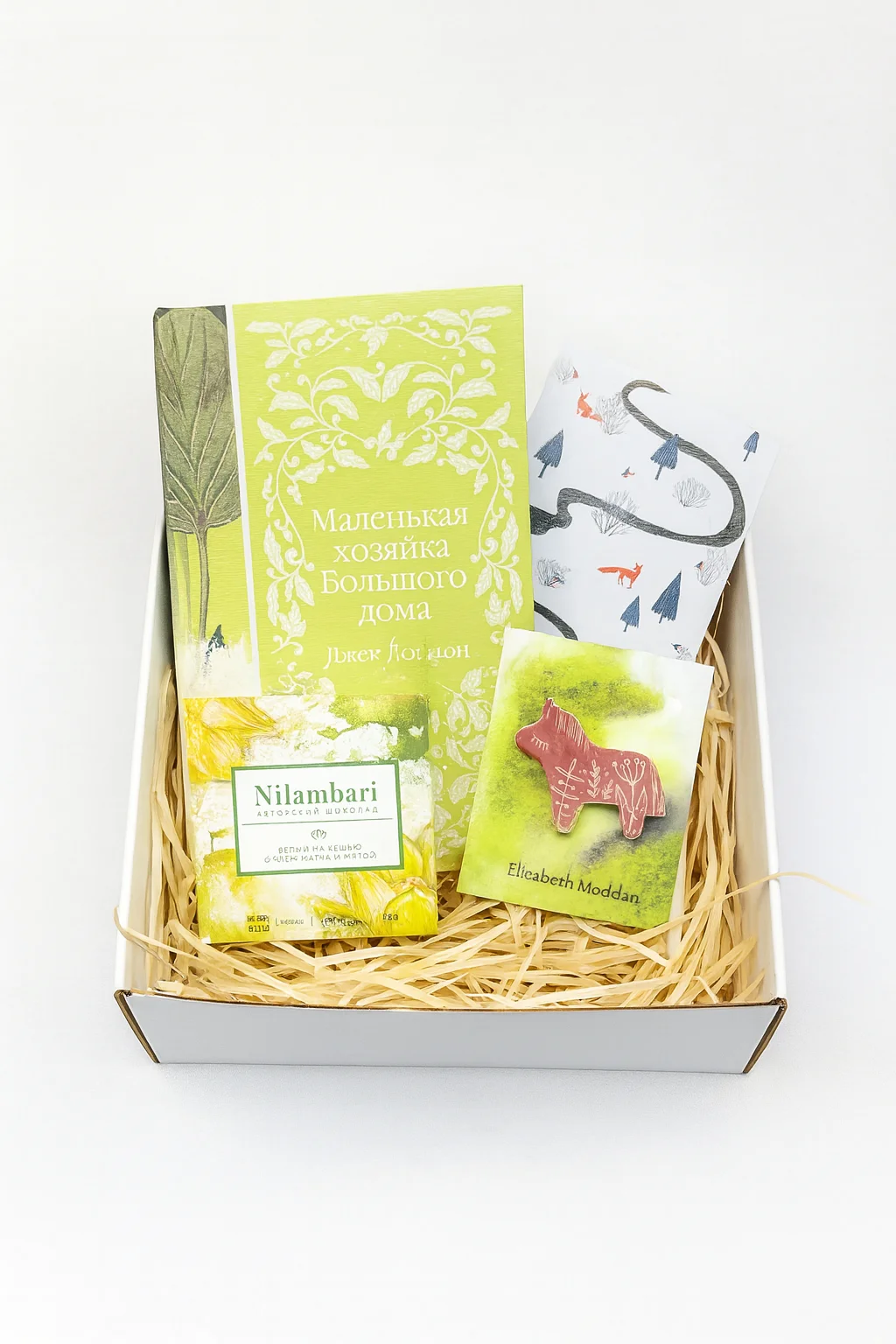 Подарочный набор на Новый год с книгой «Маленькая хозяйка Большого дома», брошью и шоколадом
