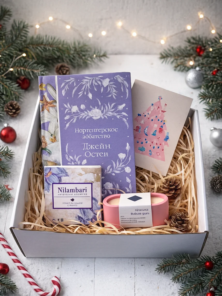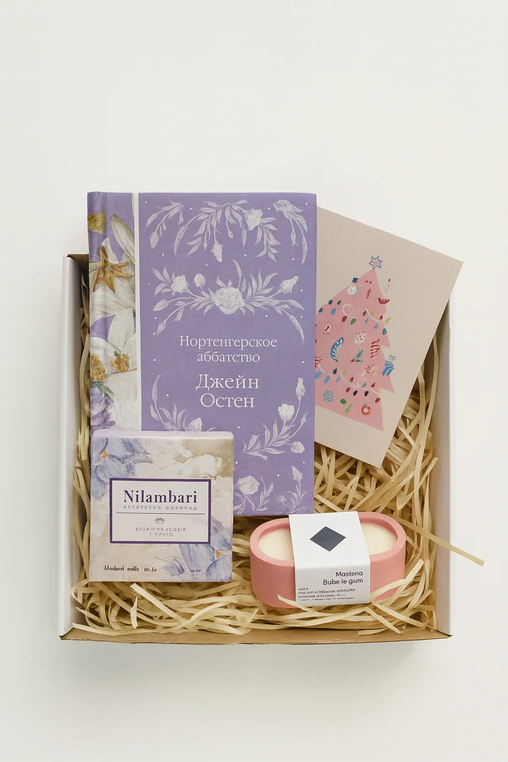Подарочный набор на Новый год с книгой «Нортенгерское аббатство», свечой и шоколадом