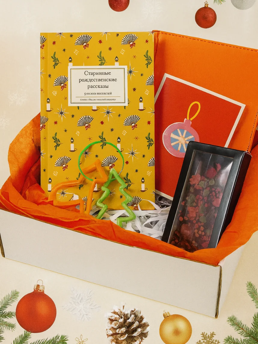 Подарочный набор на Новый год с книгой «Старинные рождественские рассказы русских писателей», брелком, шоколадом и ежедневником