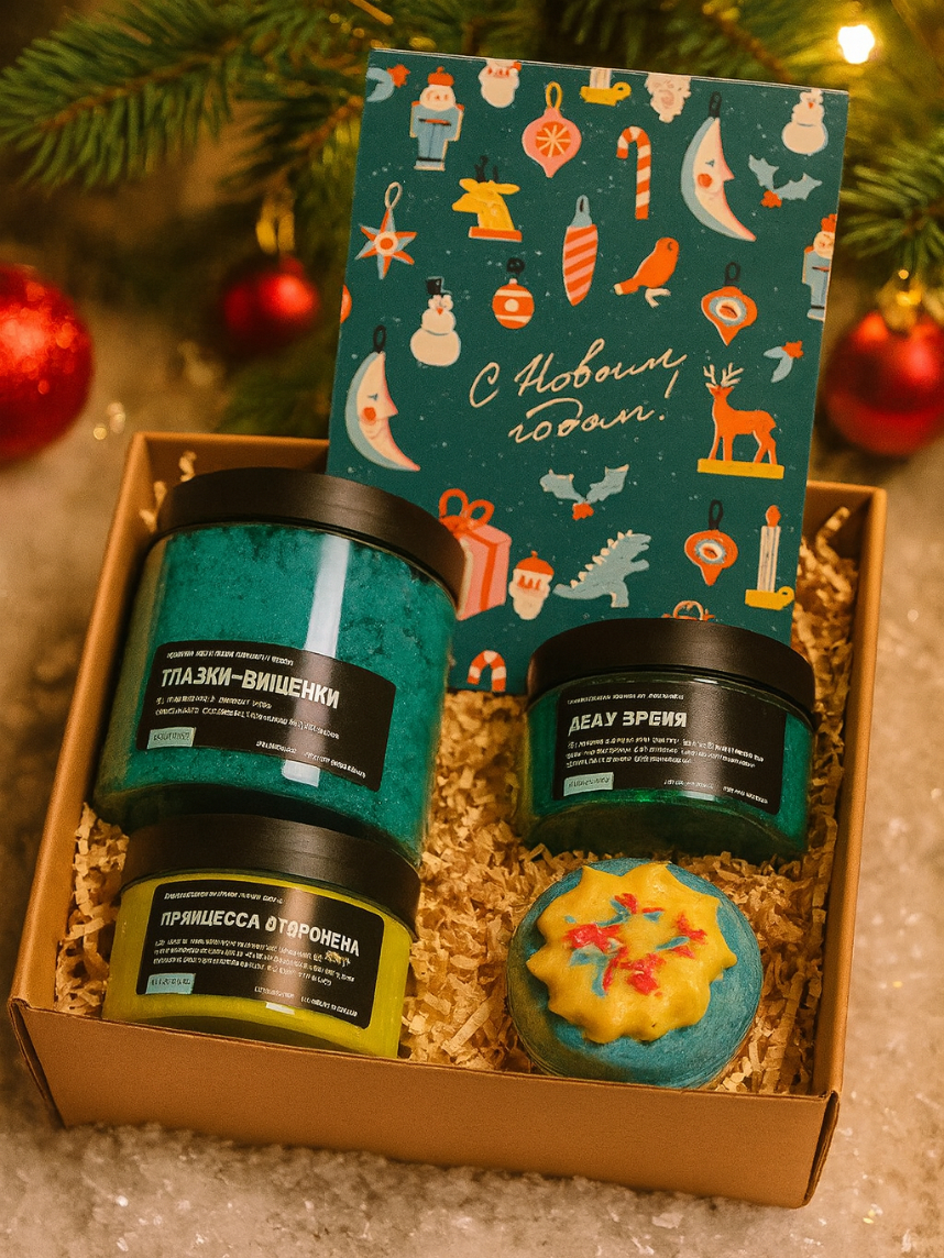 Что может быть лучше горячей ароматной ванны после долгого дня? Мы собрали оригинальный подарочный набор на Новый год, который точно обрадует любительницу банных ритуалов!
