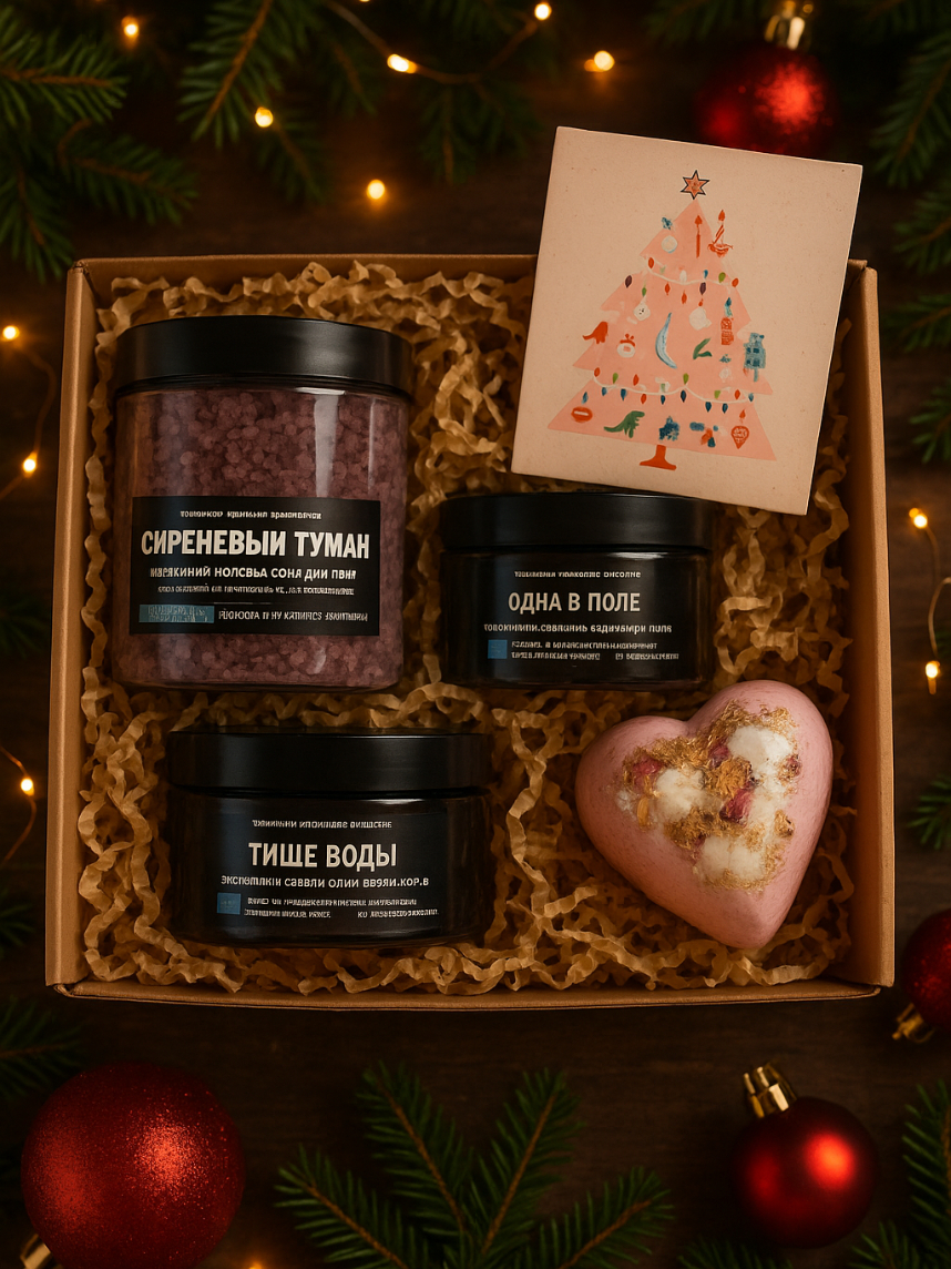 Что может быть лучше горячей ароматной ванны после долгого дня? Мы собрали оригинальный подарочный набор на Новый год, который точно обрадует любительницу банных ритуалов!
