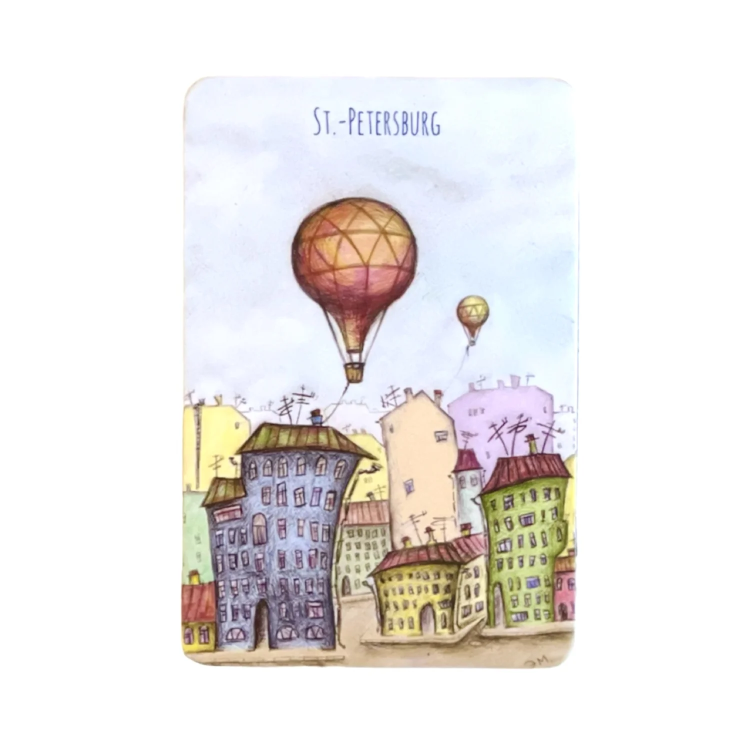 Подарочный набор «Пролетая над Петербургом» - это сувенирный набор, созданный художницей Elizabet Madar, который позволит вам окунуться в атмосферу Санкт-Петербурга.