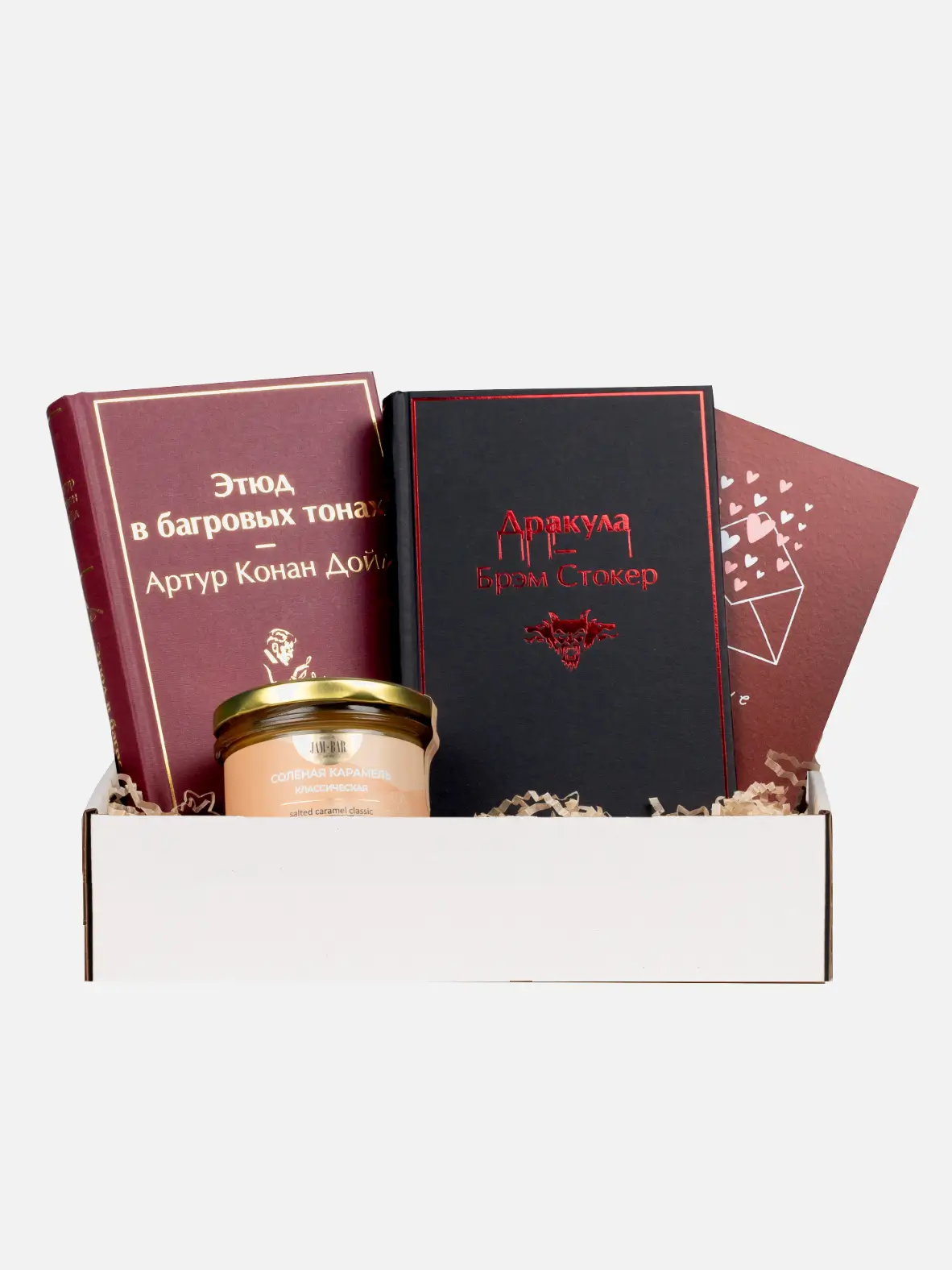 Подарочный набор с книгами «Дракула», «Этюд в багровых тонах» и мягкой карамелью