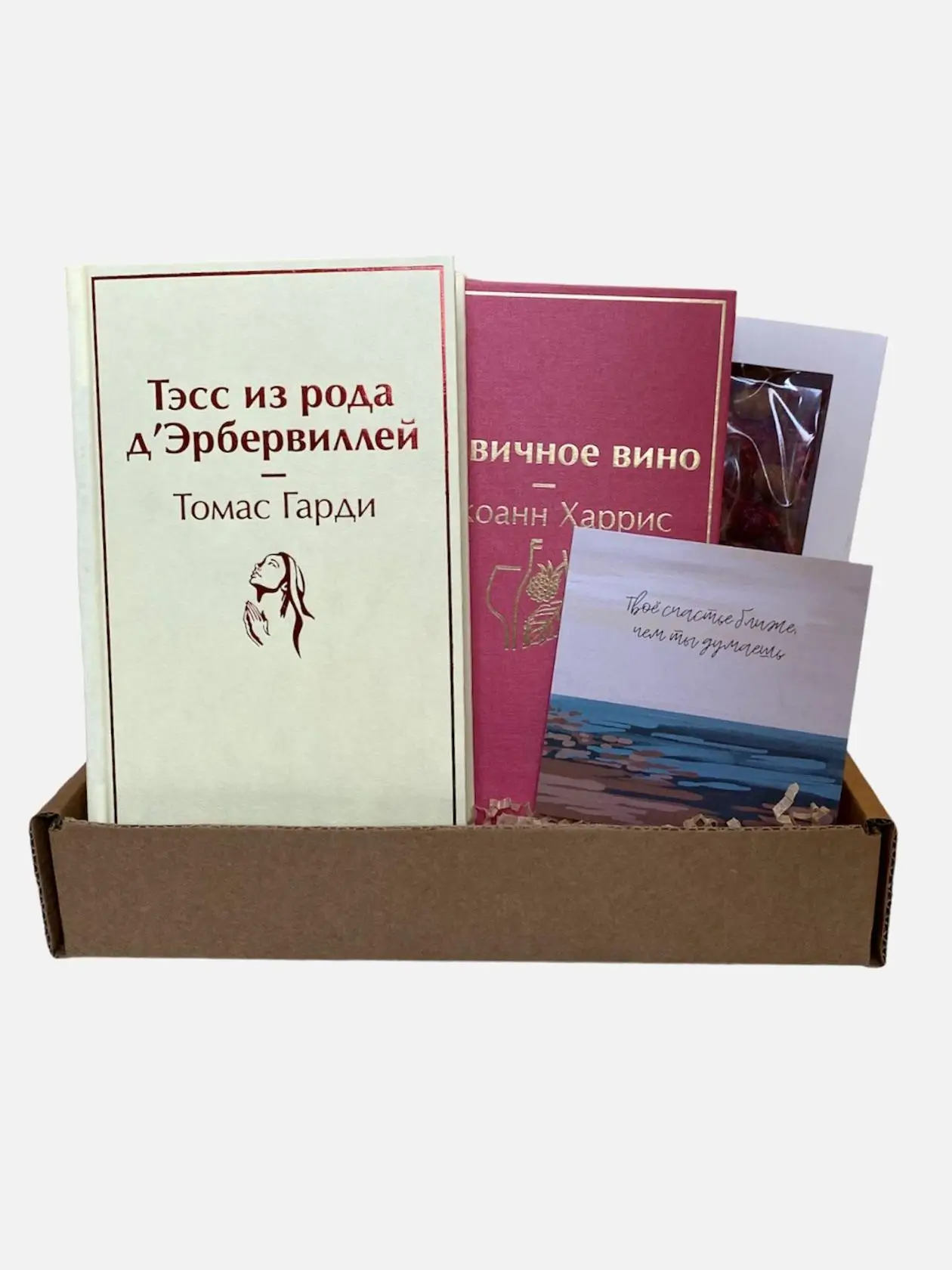 Подарочный набор с книгами «Ежевичное вино», «Тэсс из рода д'Эрбервиллей» и шоколадом