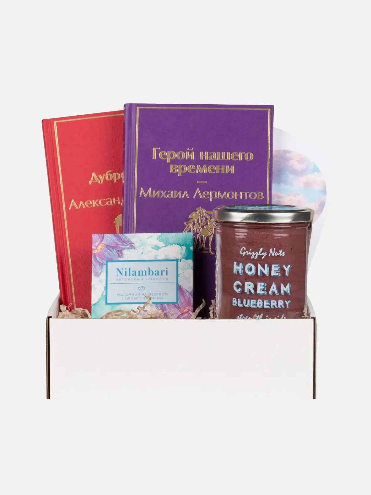 Подарочный набор с книгами «Герой нашего времени», «Дубровский» и сладостями