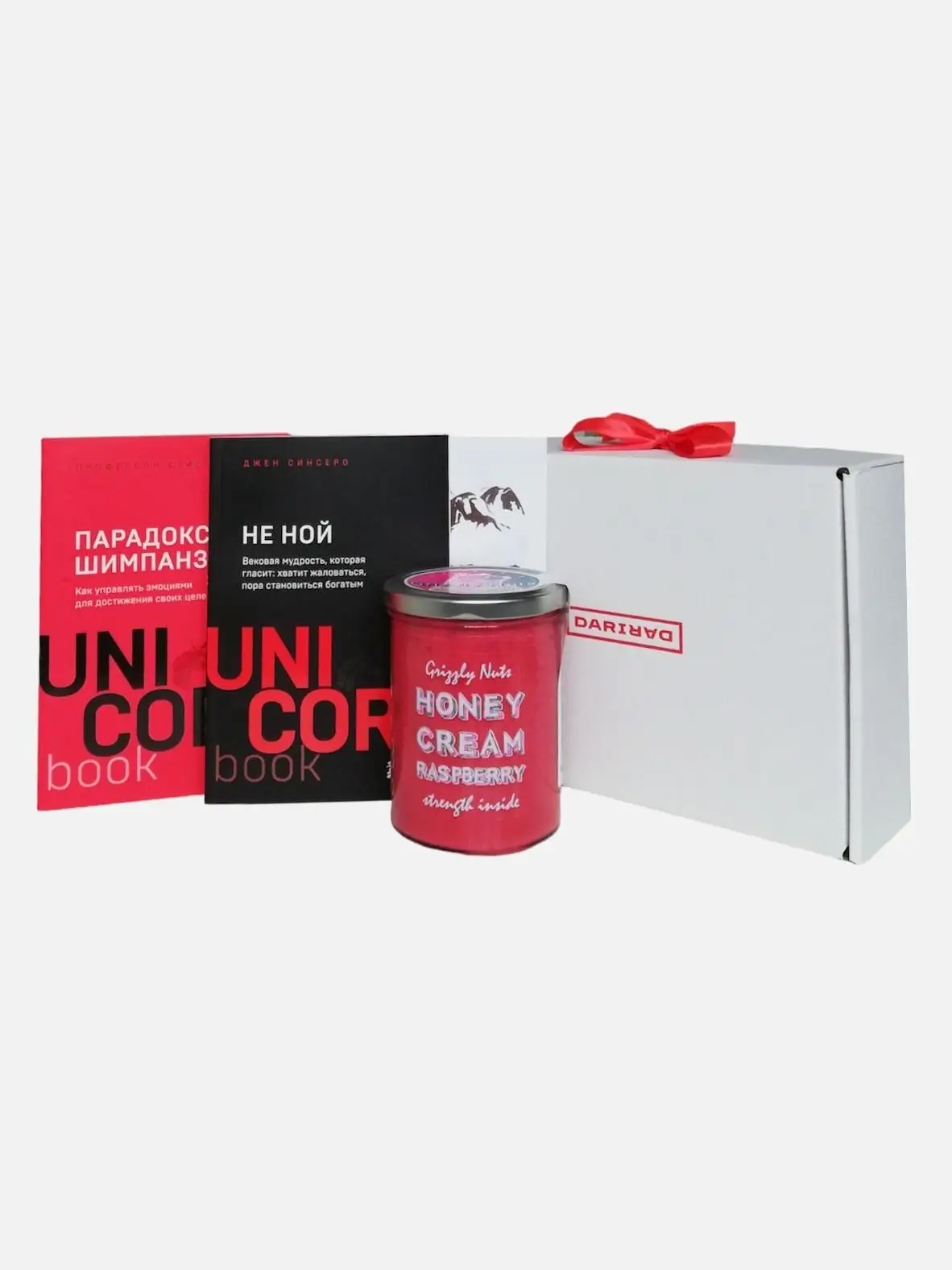 Подарочный набор с книгами «Не ной», «Парадокс шимпанзе» и взбитым мёдом