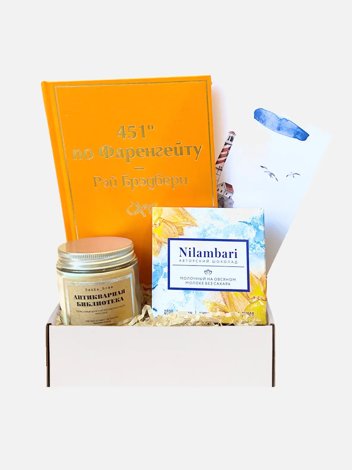 Подарочный набор с книгой «451 по Фаренгейту», ароматической свечой и шоколадом