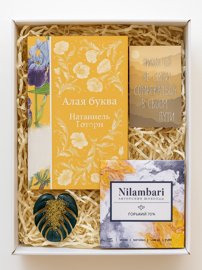Подарочный набор с книгой «Алая буква», брошью и шоколадом