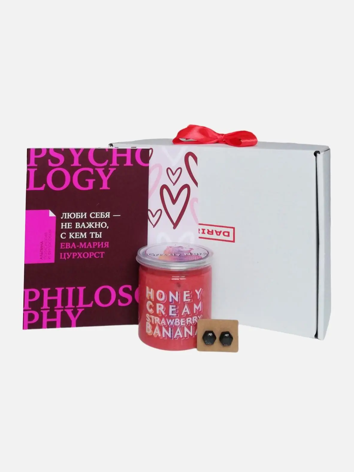 Подарочный набор с книгой «Люби себя - не важно, с кем ты», мёдом и серёжками ручной работы