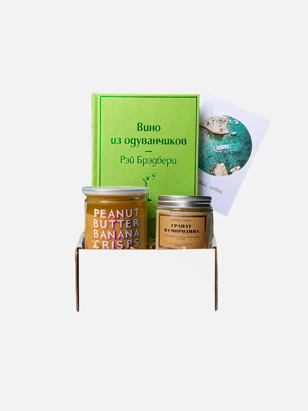 Подарочный набор с книгой «Вино из одуванчиков», ароматической свечой и арахисовой пастой