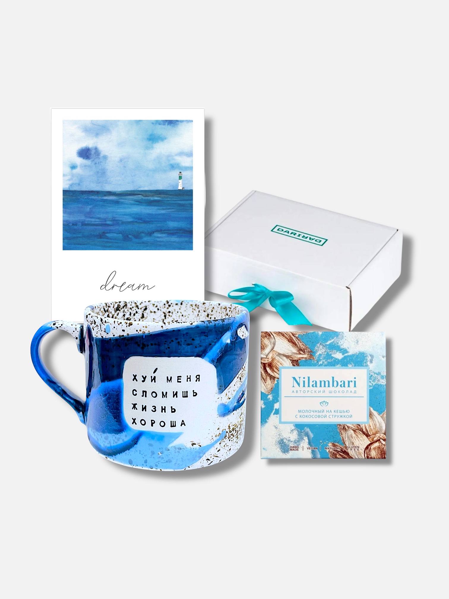 Кстати, открытку можно заменить на любую от нашего бренда, а также мы можем ее подписать - просто напишите это в комментарии к заказу!