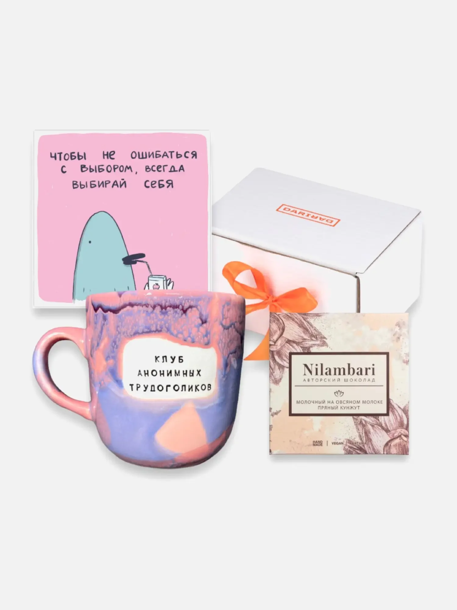 Подарочный набор с кружкой «Клуб анонимных трудоголиков», розовой, и шоколадом