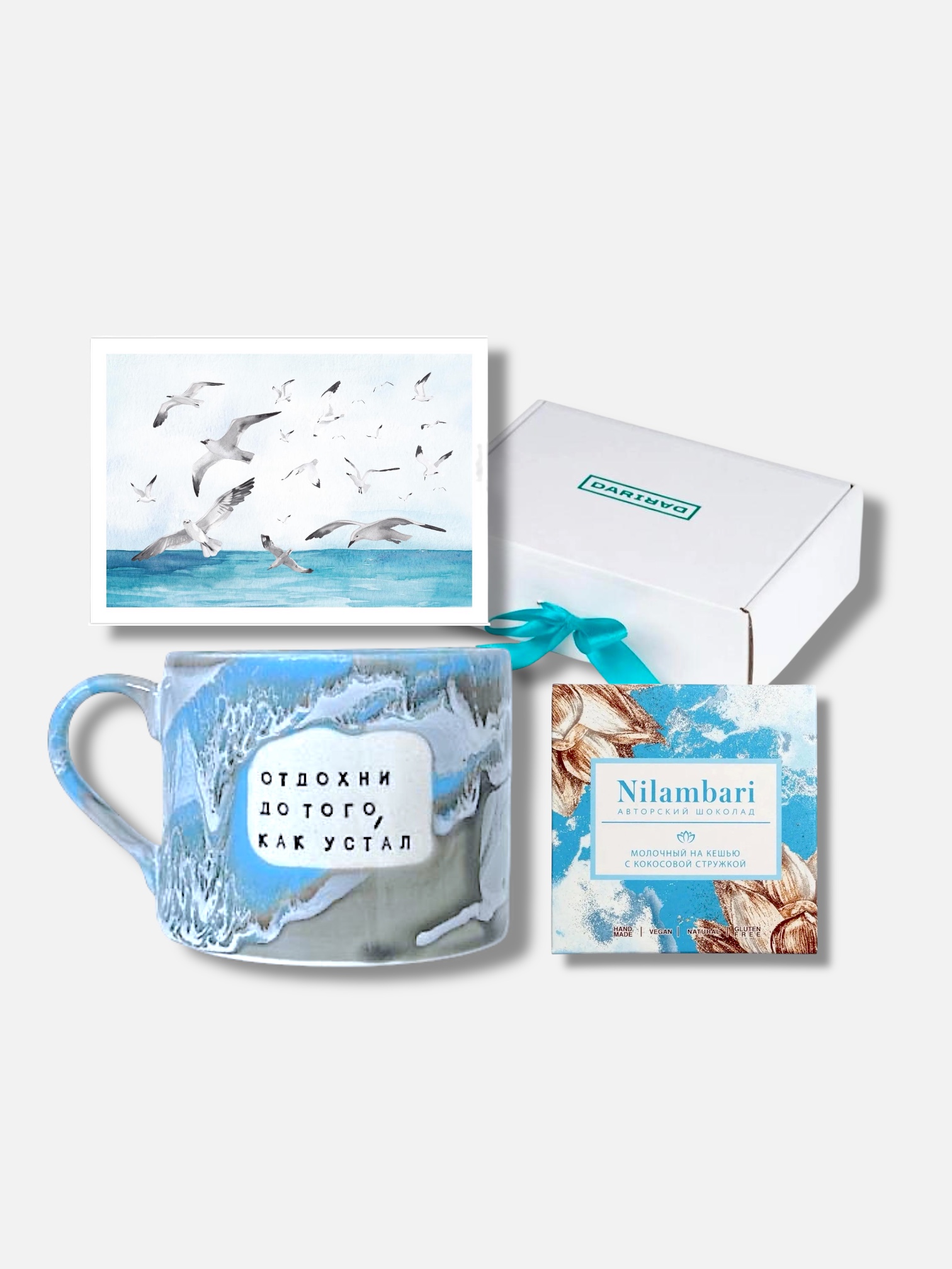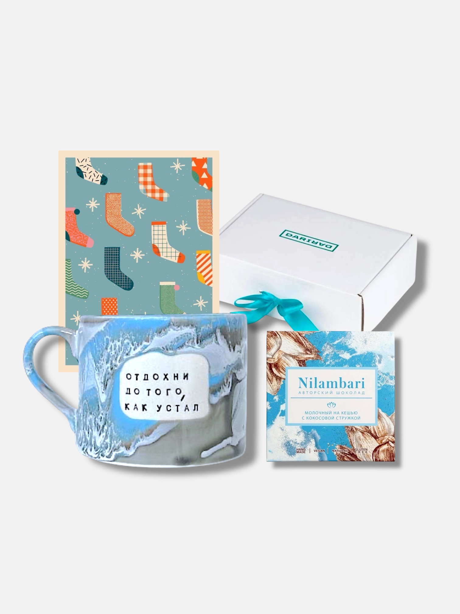 Подарочный набор с кружкой «Отдохни до того, как устал» и шоколадом