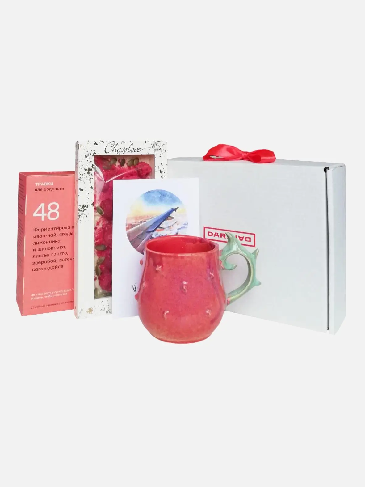 Подарочный набор с кружкой ручной работы, травяным чаем и шоколадом
