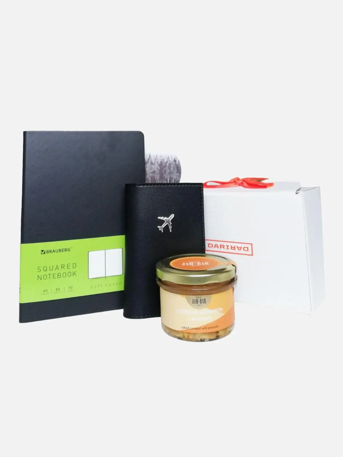 Подарочный набор с обложкой на паспорт, блокнотом и солёной карамелью