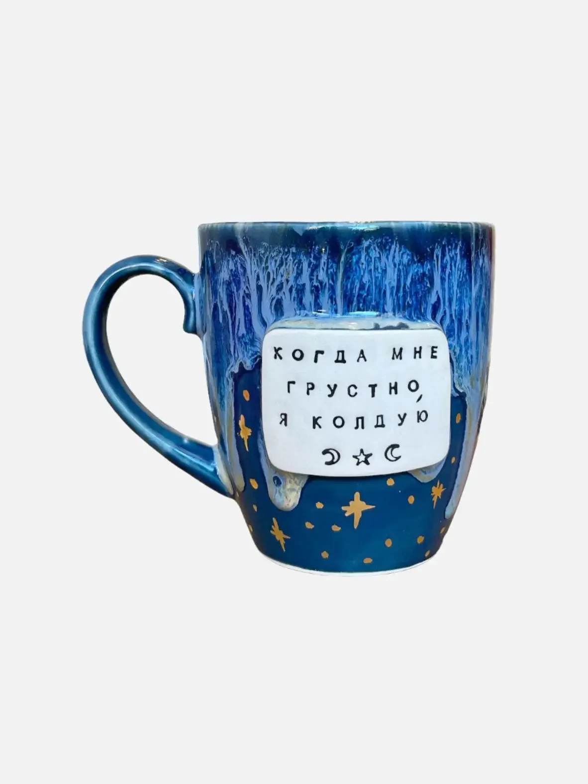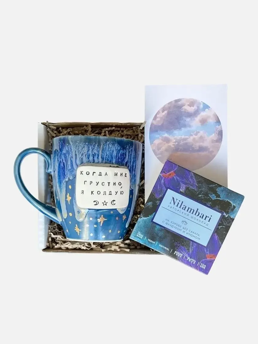 Подарочный набор с синей кружкой «Когда мне грустно я колдую» и шоколадом