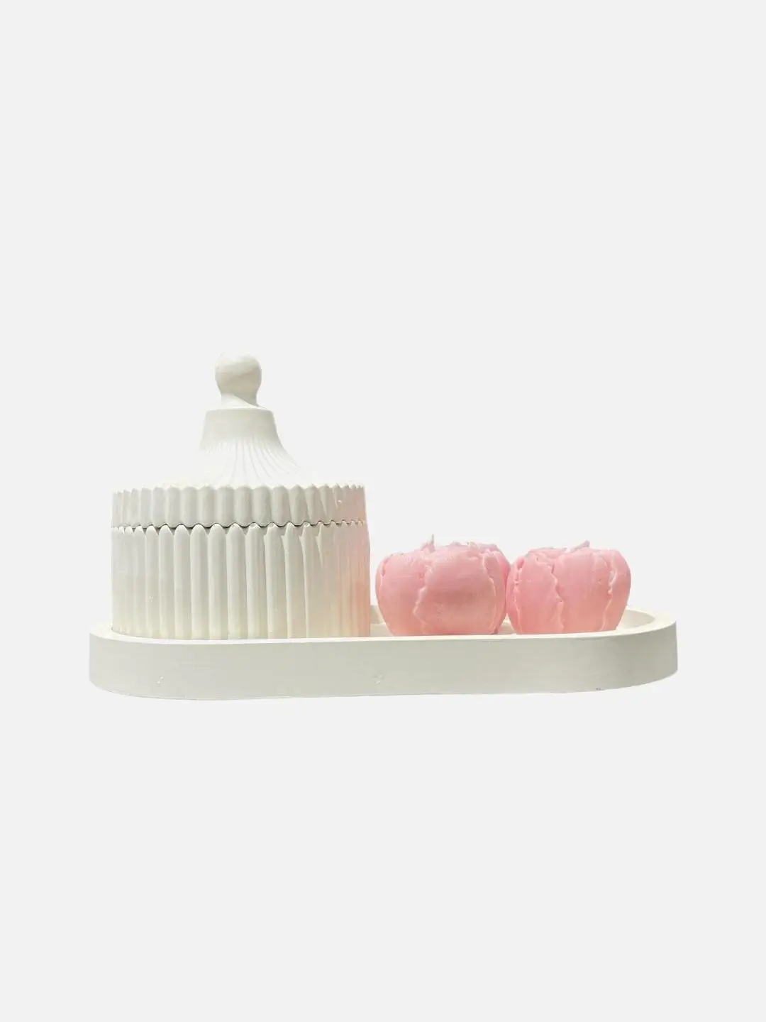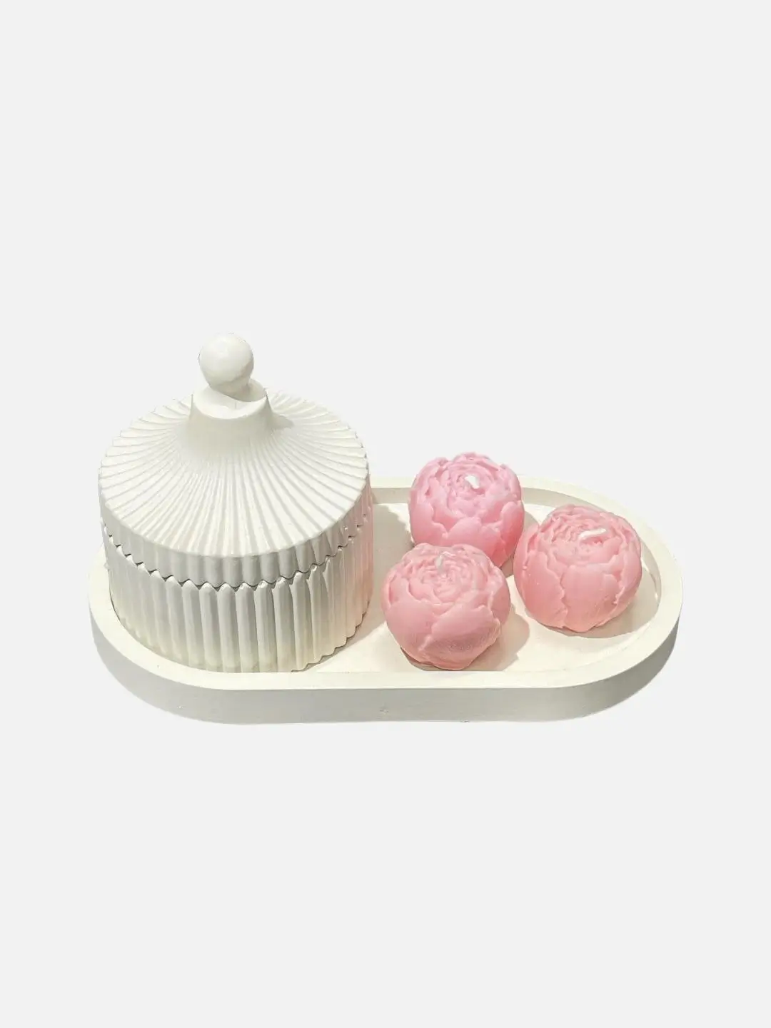 Подарочный набор со шкатулкой и маленькими свечами «Пионы»