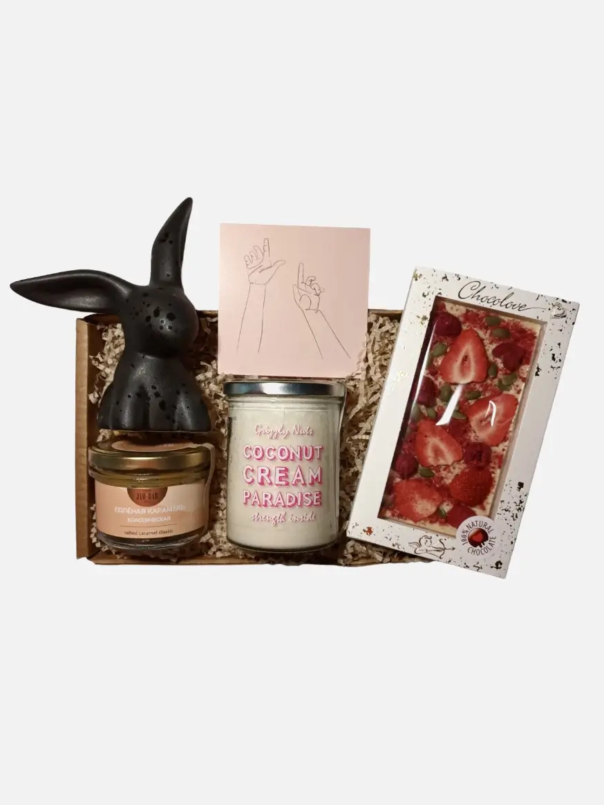 Что подарить девушке любого возраста? Конечно, сладости и милого зайчика!