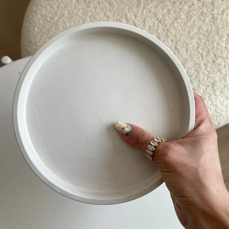 Универсальный круглый поднос из гипса белого цвета — это стильный декор для любого пространства. Вариантов использования множество - может выполнять роль подставки под украшения или любые непищевые предметы, идеально подходит для предметных съёмок как фотореквизит или фотофон.