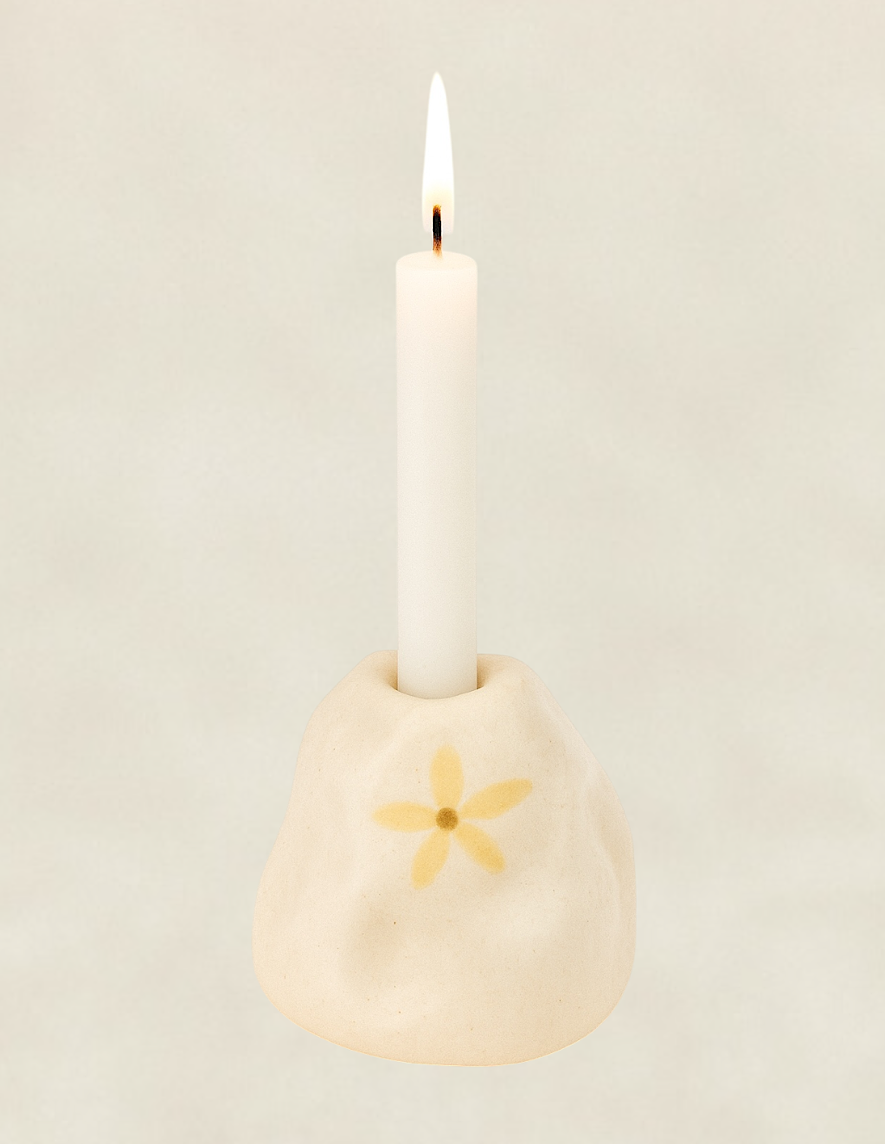 Подсвечник для тонких свечей «Цветочки» — яркий и изящный аксессуар, выполненный из качественной керамики в насыщенном жёлтом цвете.
