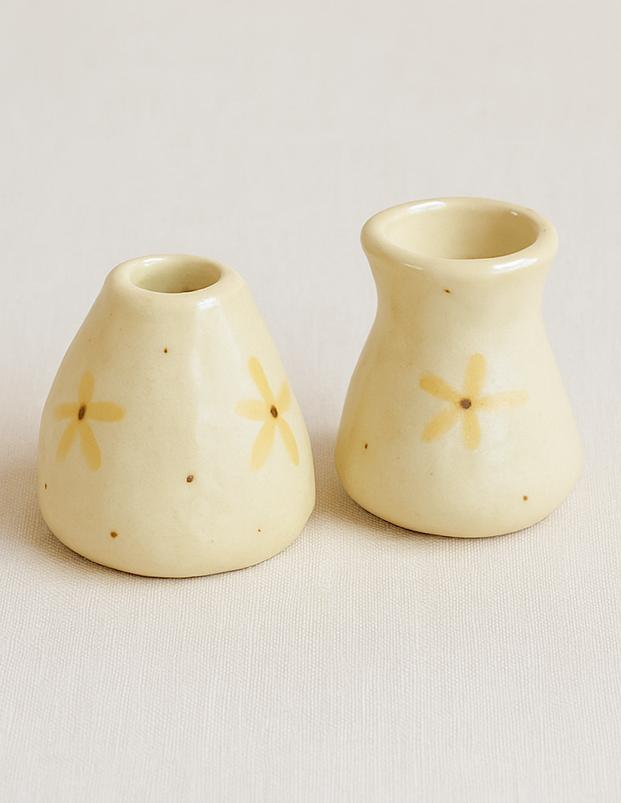 Подсвечник для тонких свечей «Цветочки», жёлтый, керамика