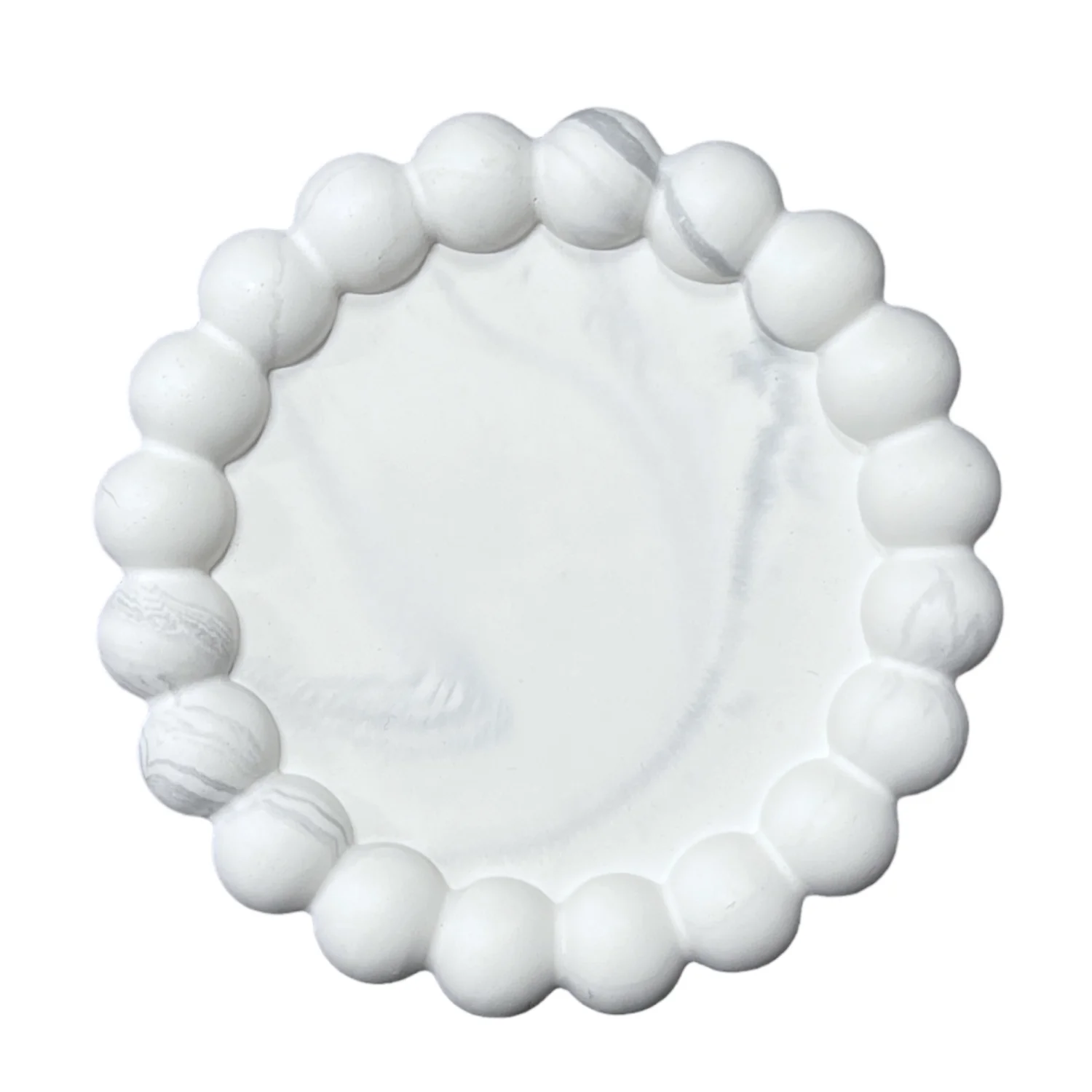 Подсвечник гипсовый в белом цвете с разводами - отличное дополнение к свечам в виде цветов.