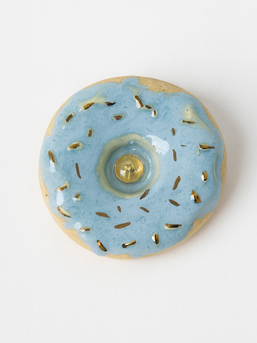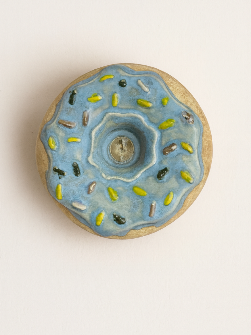 Подсвечник ручной работы «Пончик с голубой глазурью», керамика