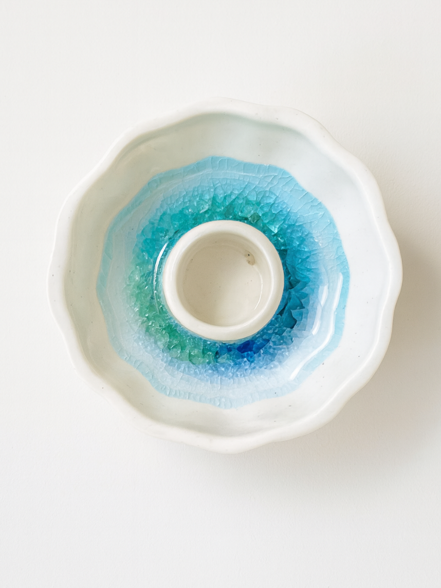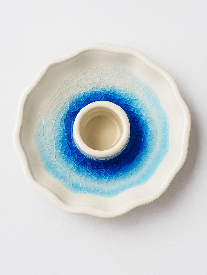 Подсвечник из керамики ручной работы «Цветочек» от бренда Sinitsa ceramics. Диаметр необходимой свечи для подсвечника - 2 см. Внутри подсвечника расплавленное битое стекло разных оттенков синего. Изображение может незначительно отличаться от фактического, отправляем из наличия. Керамический подсвечник ручной работы станет отличным подарком для близких, друзей, коллег, или как уникальный сюрприз для себя. Выбор ручной керамики в качестве подарка на День Рождения, 8 марта или Новый год является знаком вашей преданности качеству и оригинальности. Приобрести керамику ручной работы можно легко через наш интернет-магазин. Мы гарантируем качественную упаковку и доставляем товары по всей стране. Жителям и гостям Санкт-Петербурга мы предлагаем посетить наш магазин в центре города, чтобы оценить наши эксклюзивные товары лично.
