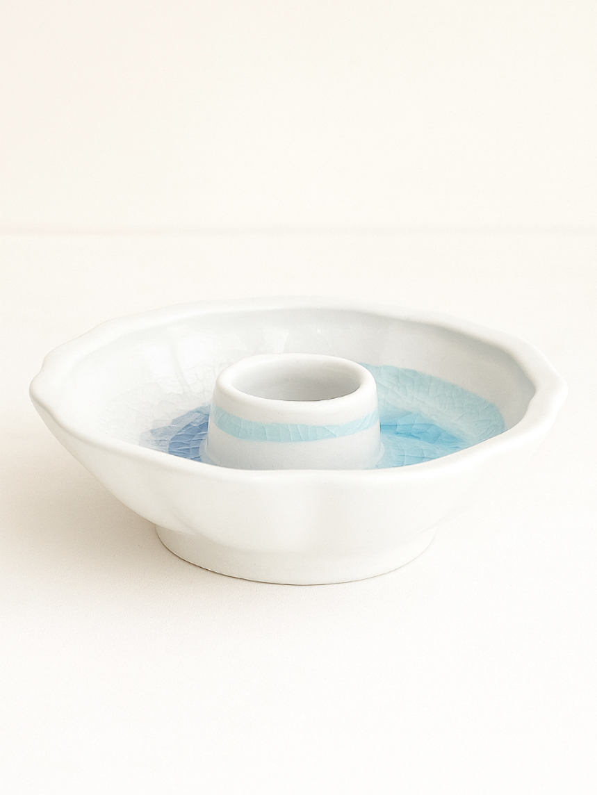 Подсвечник ручной работы «Цветочек», бело-синий, керамика