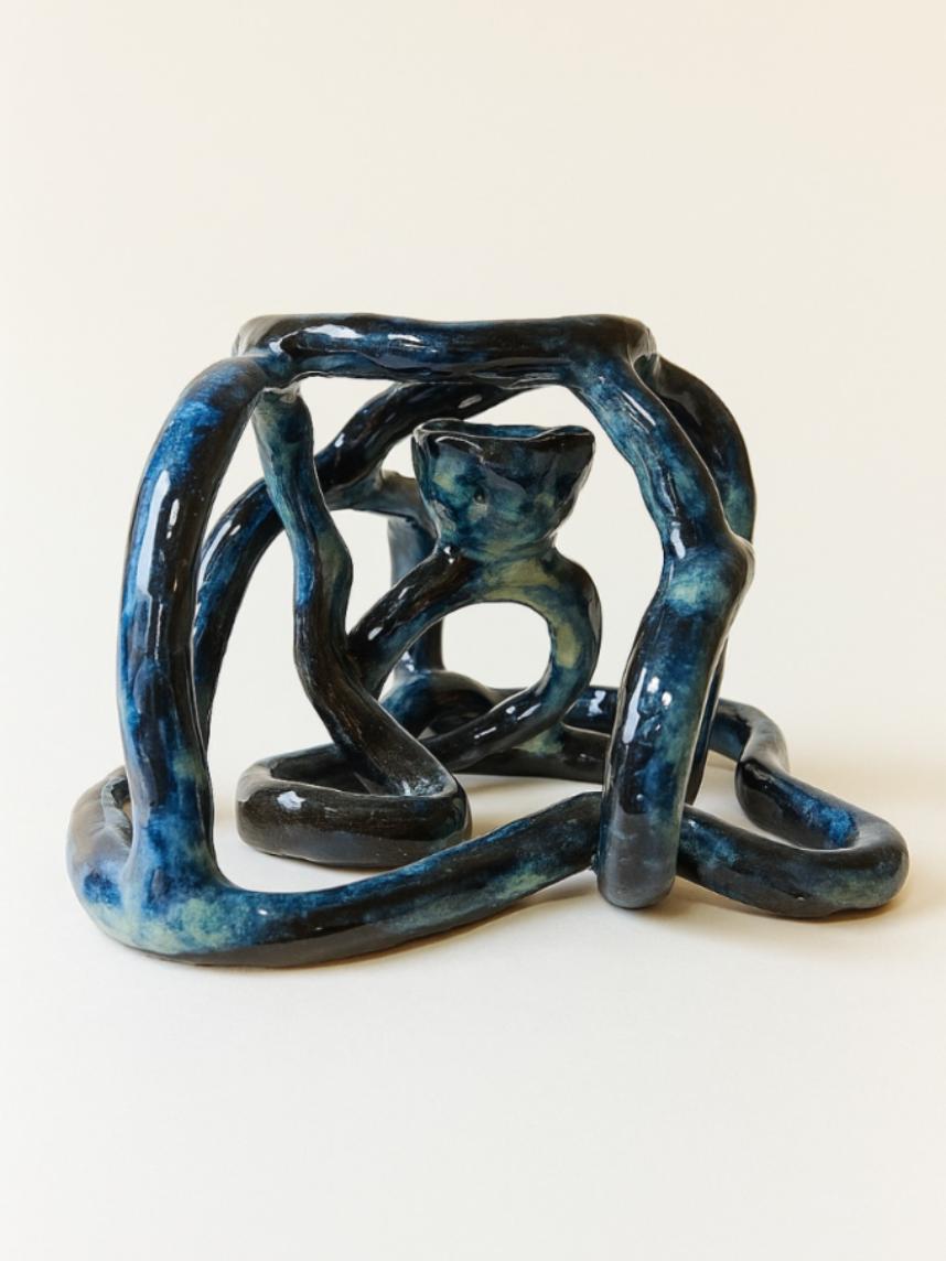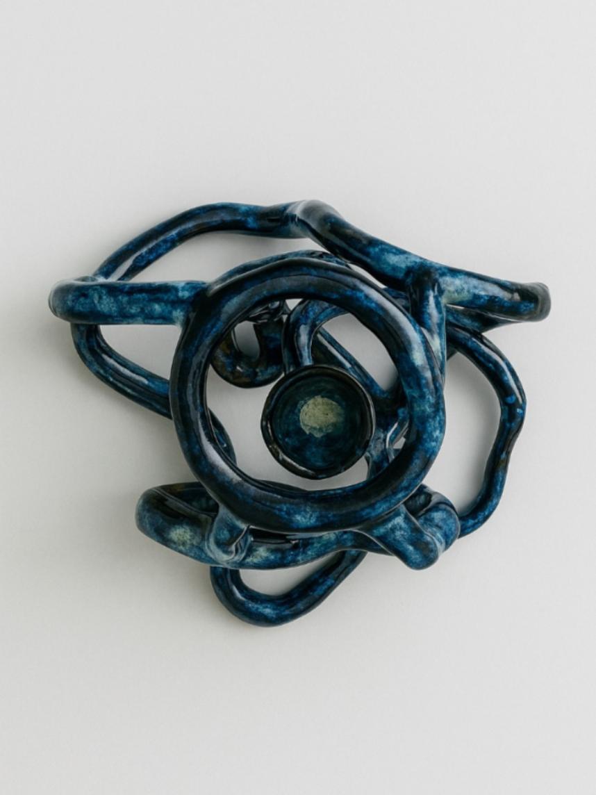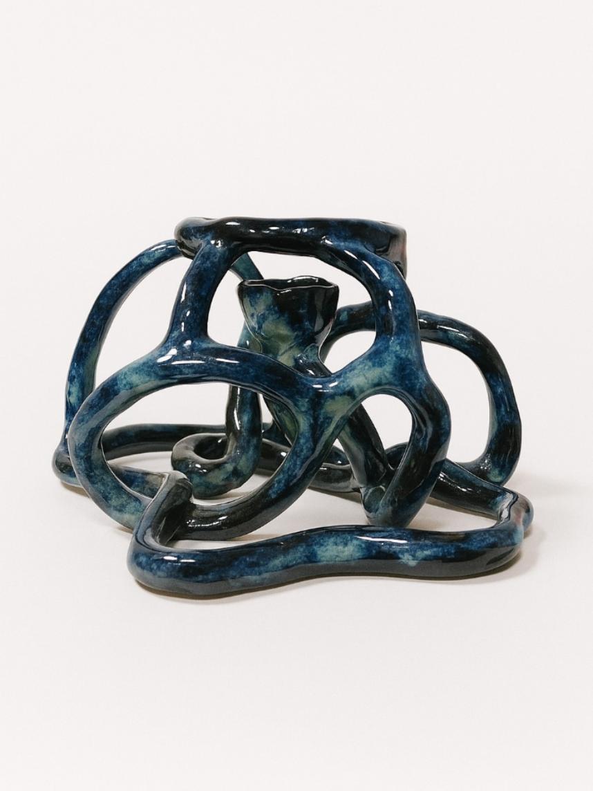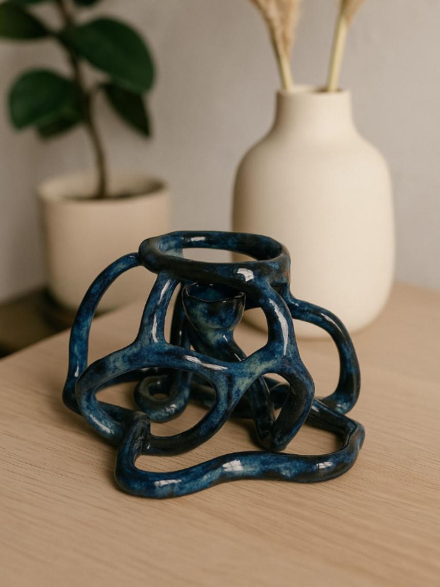 Подсвечник «Синий абстрактный» ручной работы отлично подойдет как подарок творческому человеку.