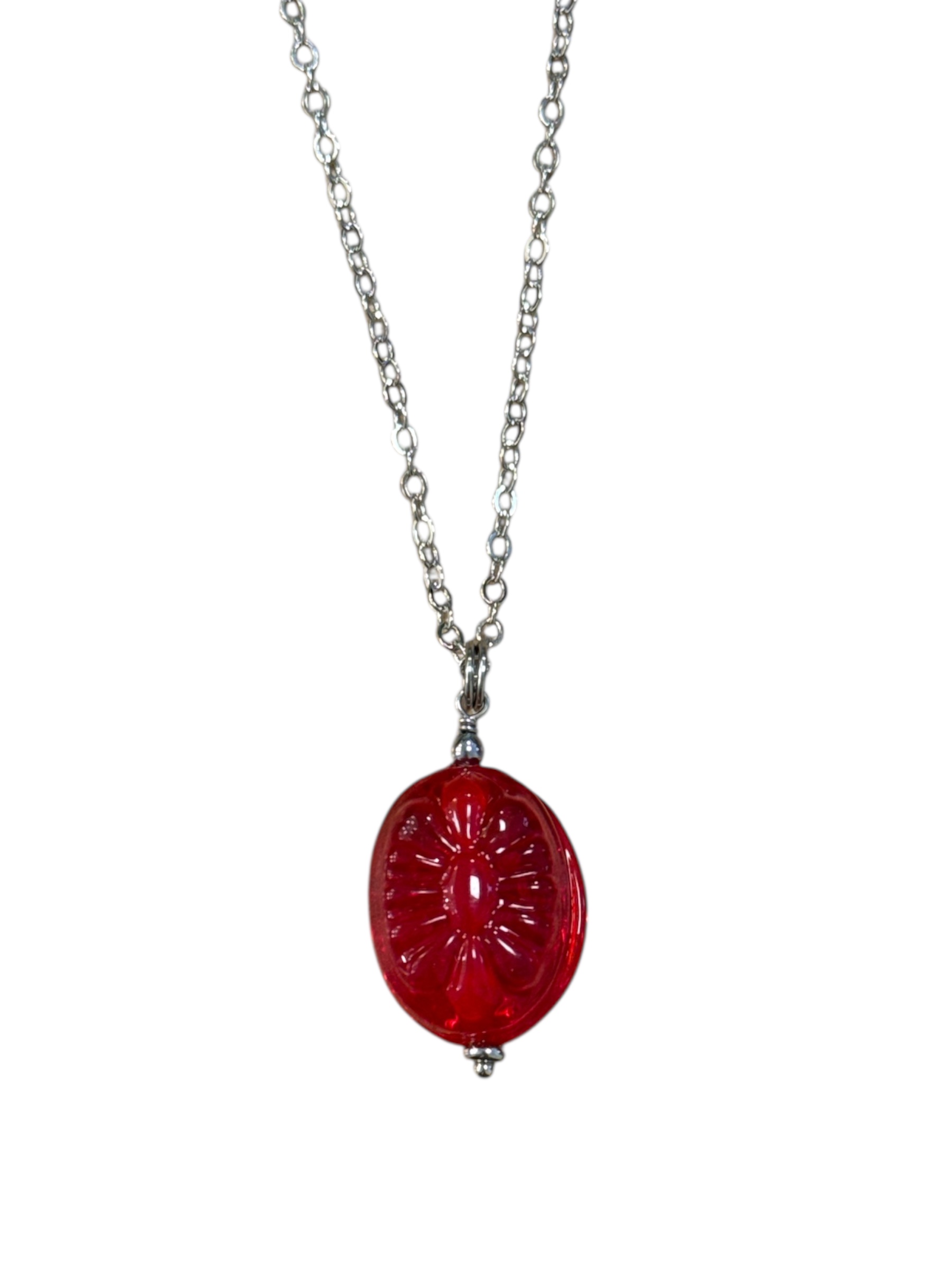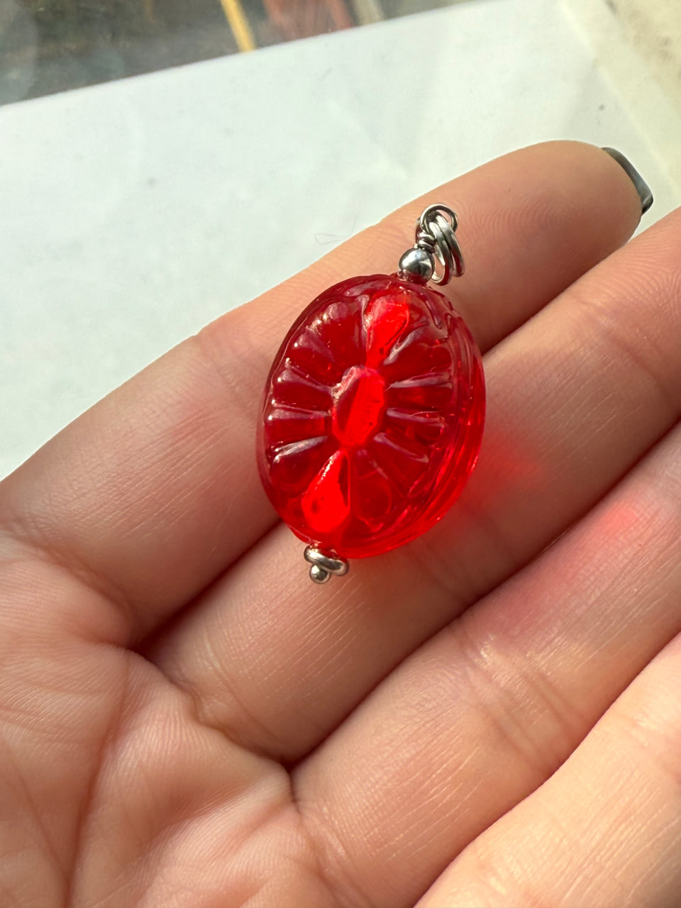 Подвеска «Конфетка», красная, родированная латунь, стекло