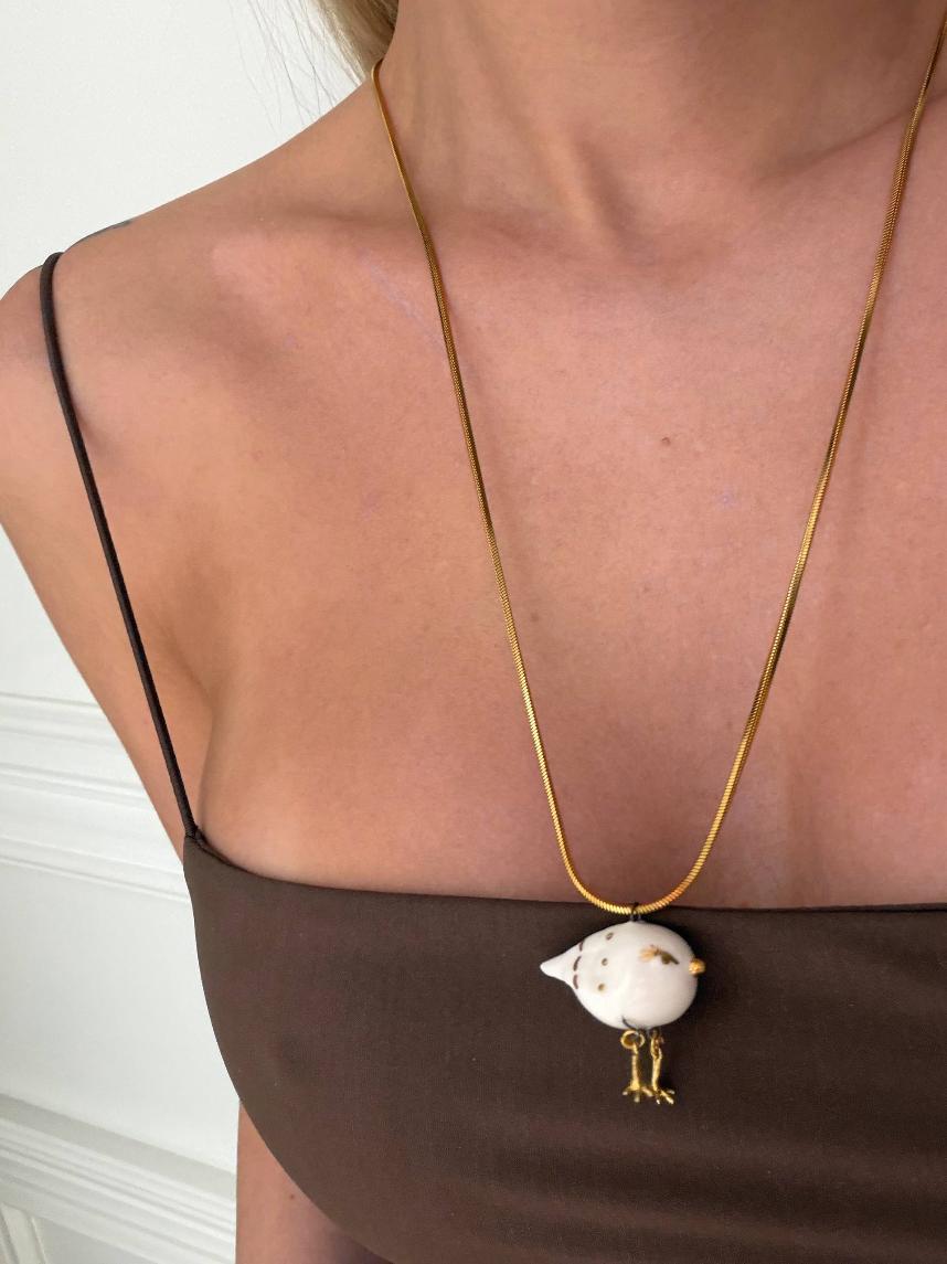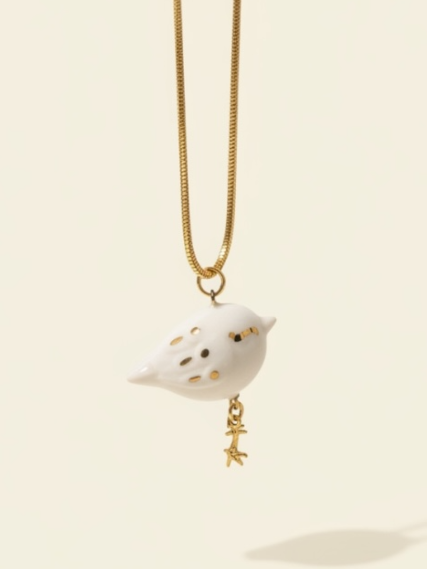 Милый керамический кулон ручной работы «‎Птичка»‎‎.