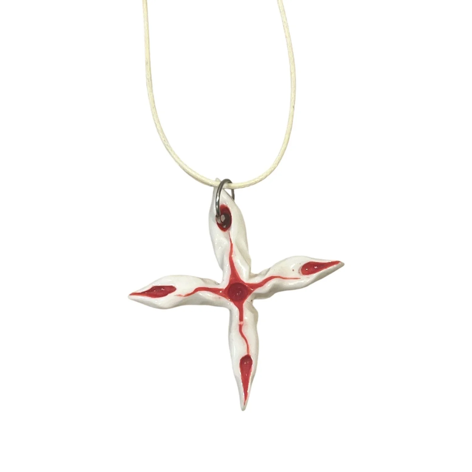 Подвеска ручной работы «‎Коралл»‎, красно-белая, керамика