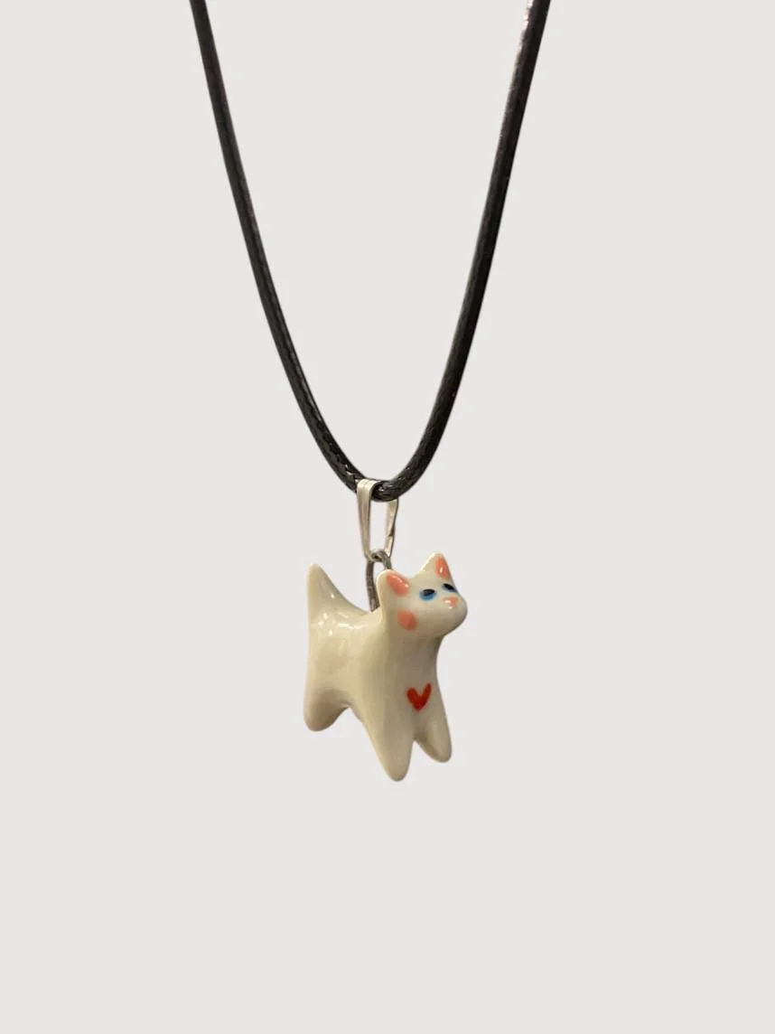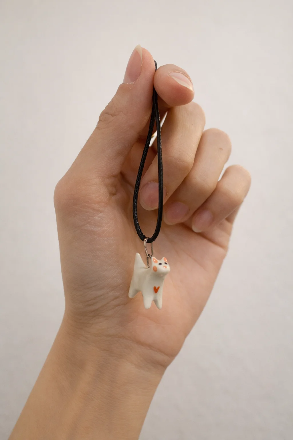 Милый керамический кулон ручной работы «‎Котик»‎‎.