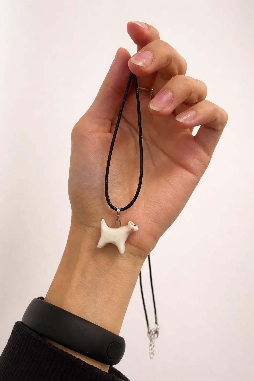 Подвеска ручной работы Боттери керамика «‎Котик белый», керамика