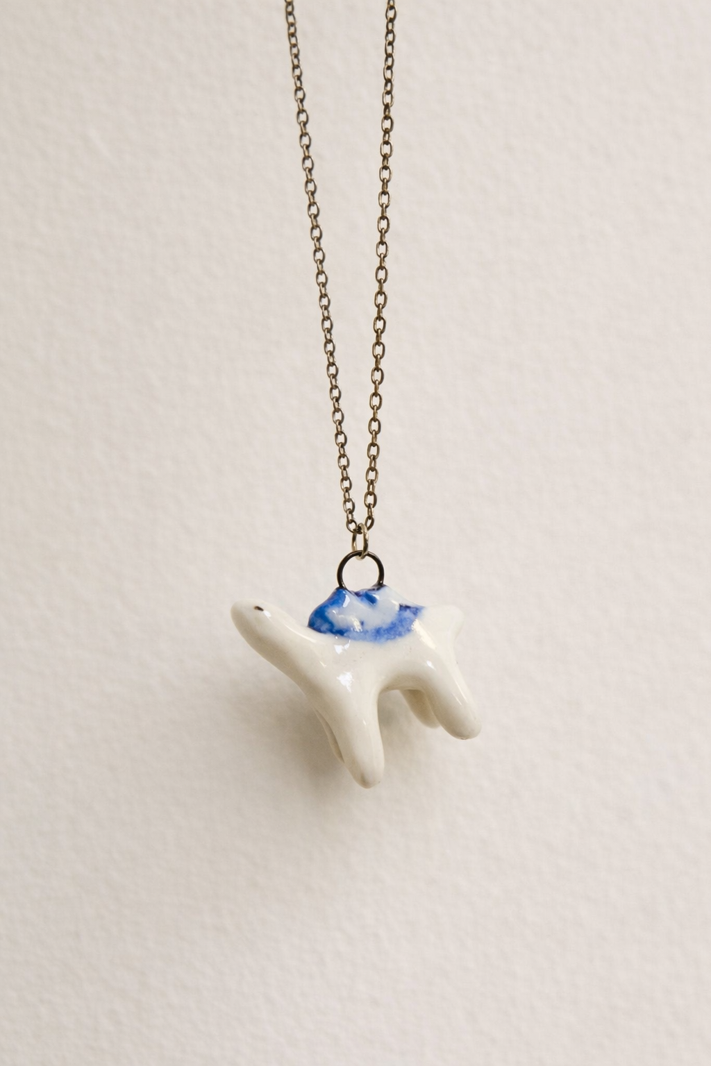 Подвеска ручной работы на цепочке «Динозаврик», голубая, керамика