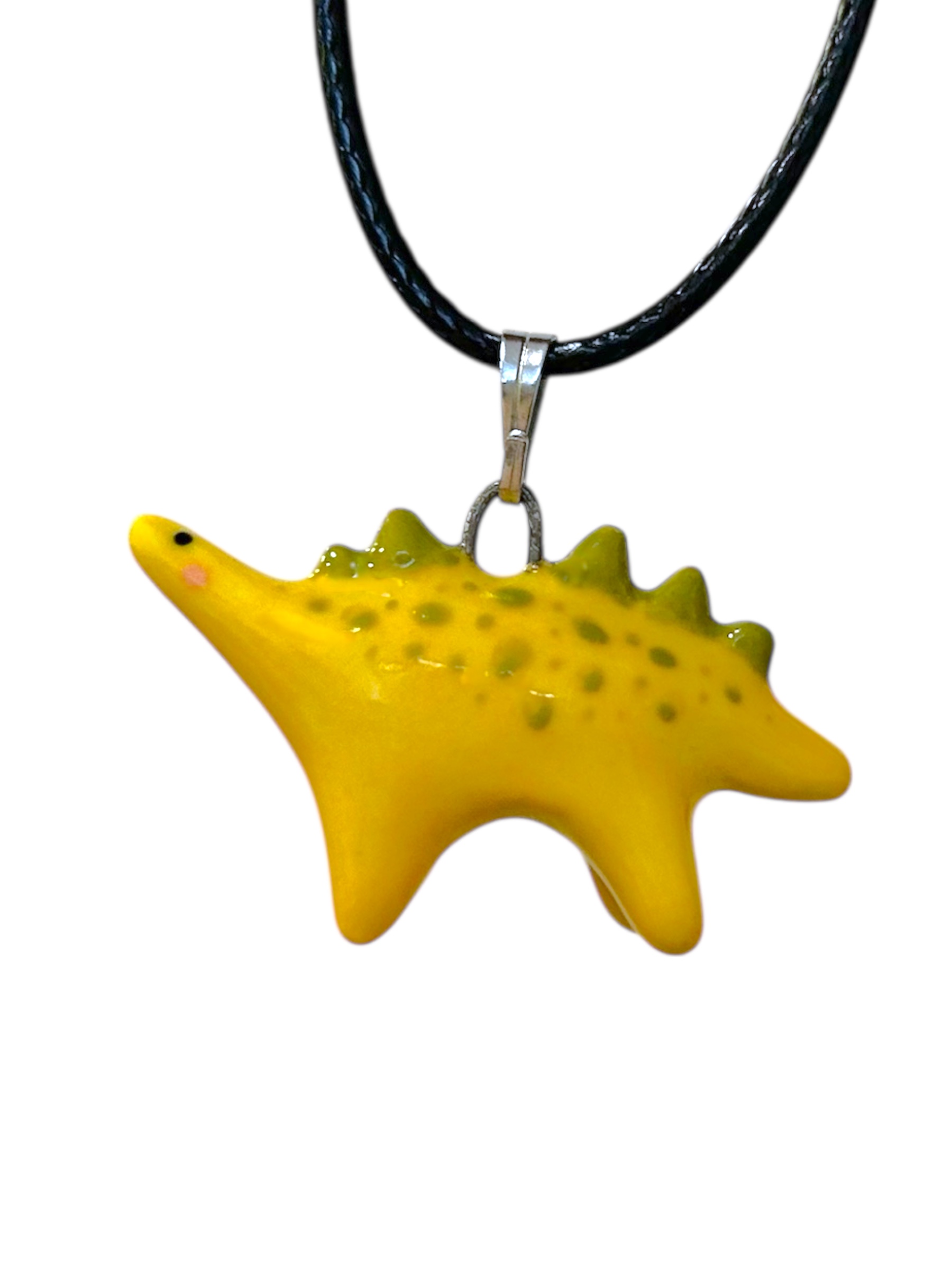 Милый керамический кулон ручной работы «‎Стегозавр жёлтый»‎‎.