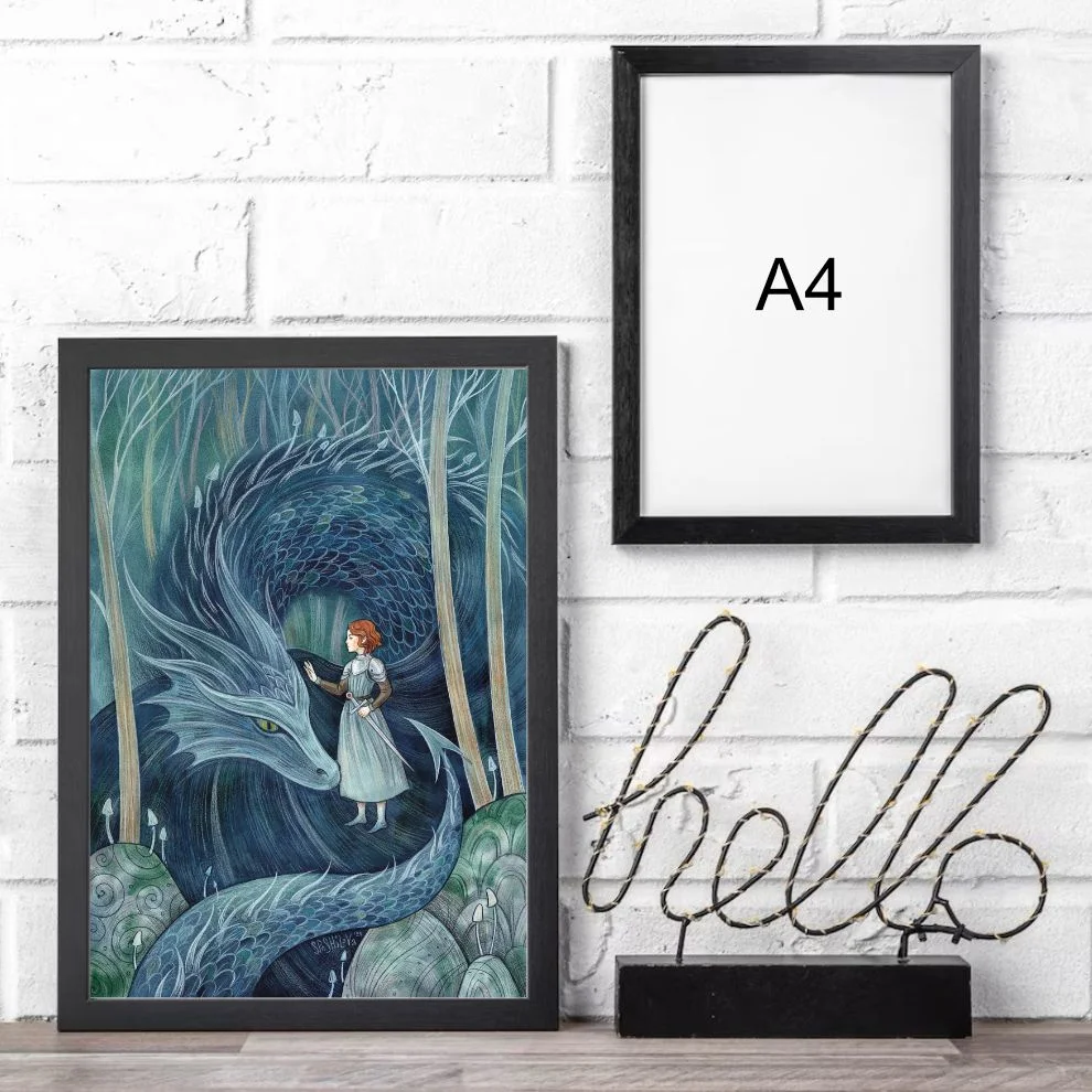 Постер интерьерный Анна Спешилова «Дракон и девушка», А3