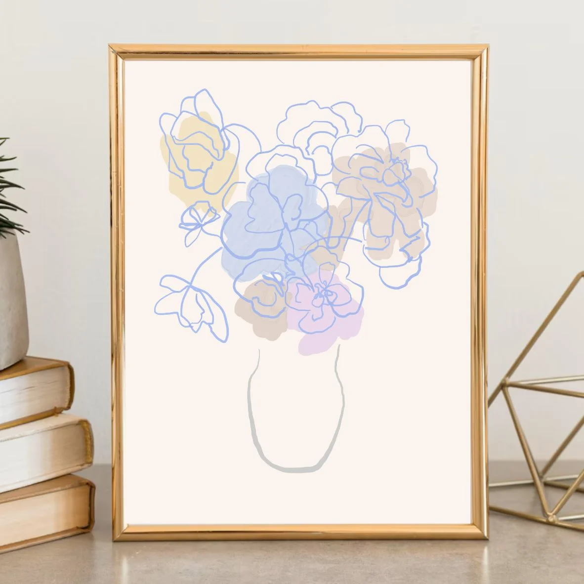 Авторский интерьерный постер с изображением акварельного цветочного натюрморта в пастельных оттенках.