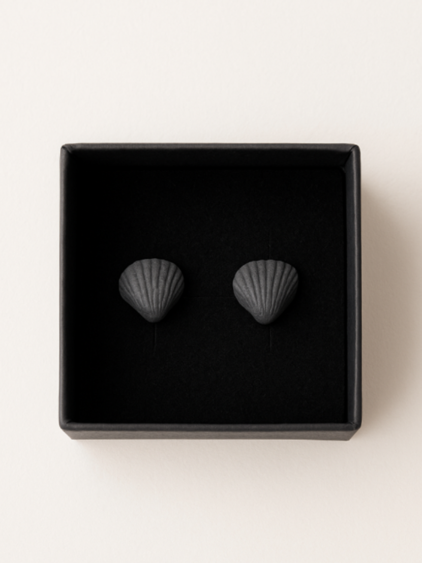 Милые серьги-гвоздики, выполненные из высококачественного испанского фарфора Black Ice в виде изящных ракушек.